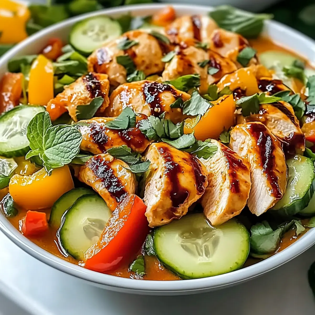 Frische Zutaten: Mit knackigem Gemüse und zartem Hähnchen bietet dieser Salat eine gesunde Kombination.