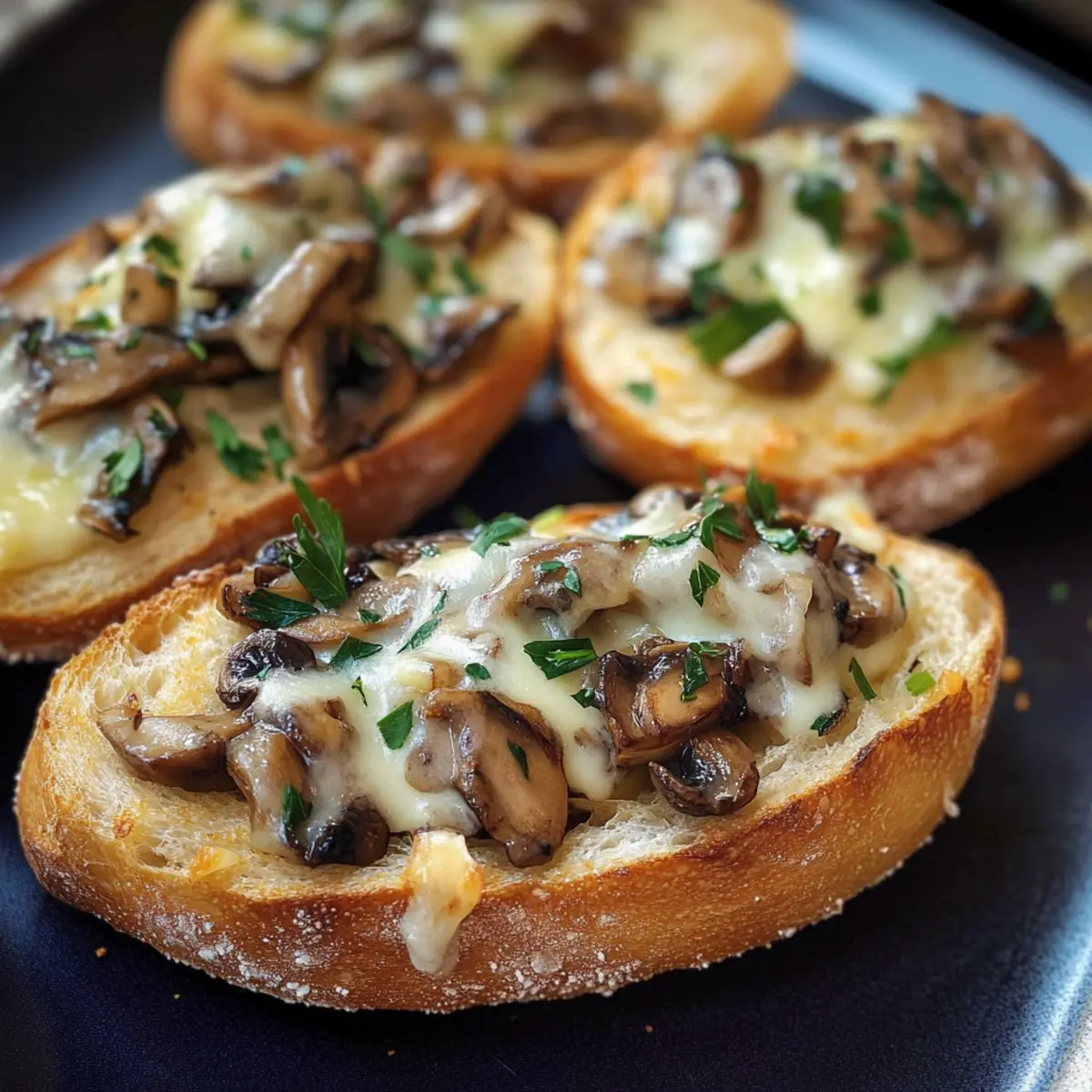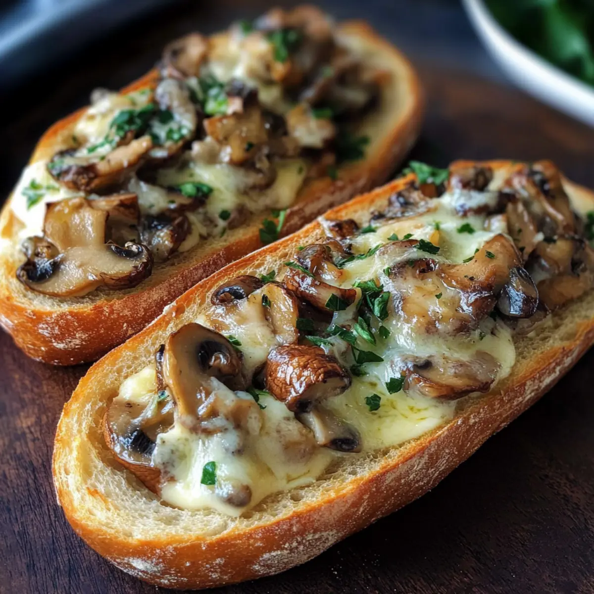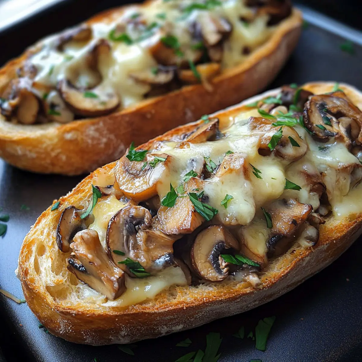 - Belegen Sie die Baguettes mit den sautierten Champignons und streuen Sie den Käse darüber.