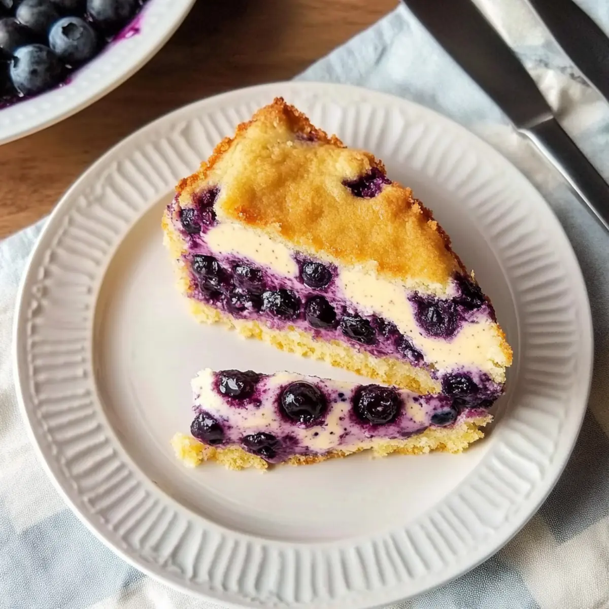 - Backe den Blaubeerkuchen für weitere 25 Minuten, bis die Füllung fest und gelartig aussieht.