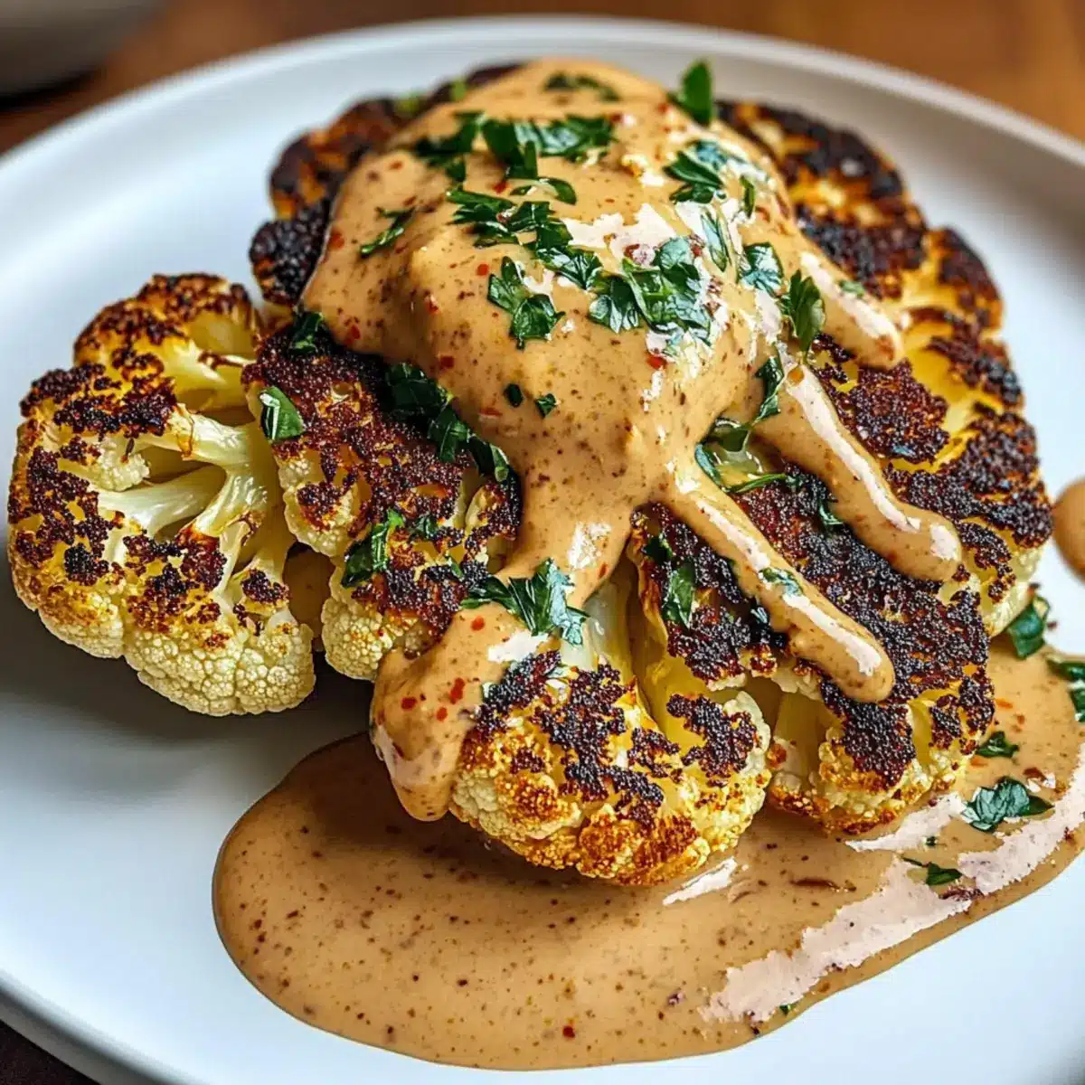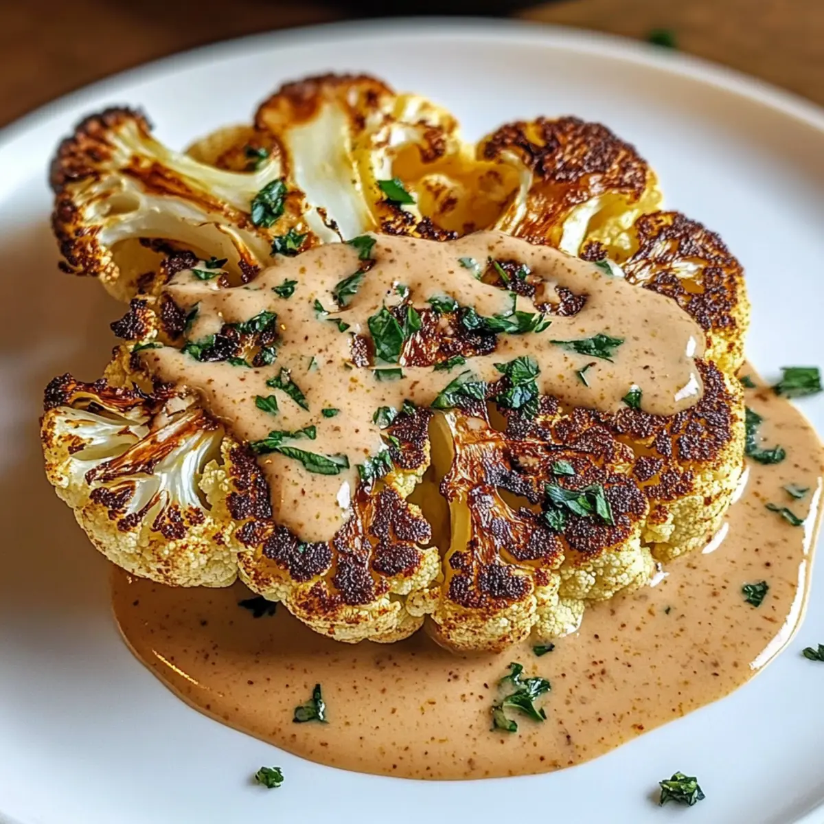 Ideal für Feierlichkeiten: Ob Familienessen oder Dinnerpartys, das Blumenkohlsteak mit würziger Pfefferrahmsauce ist der Blickfang auf jedem Tisch und wird garantiert Gesprächsstoff bieten.