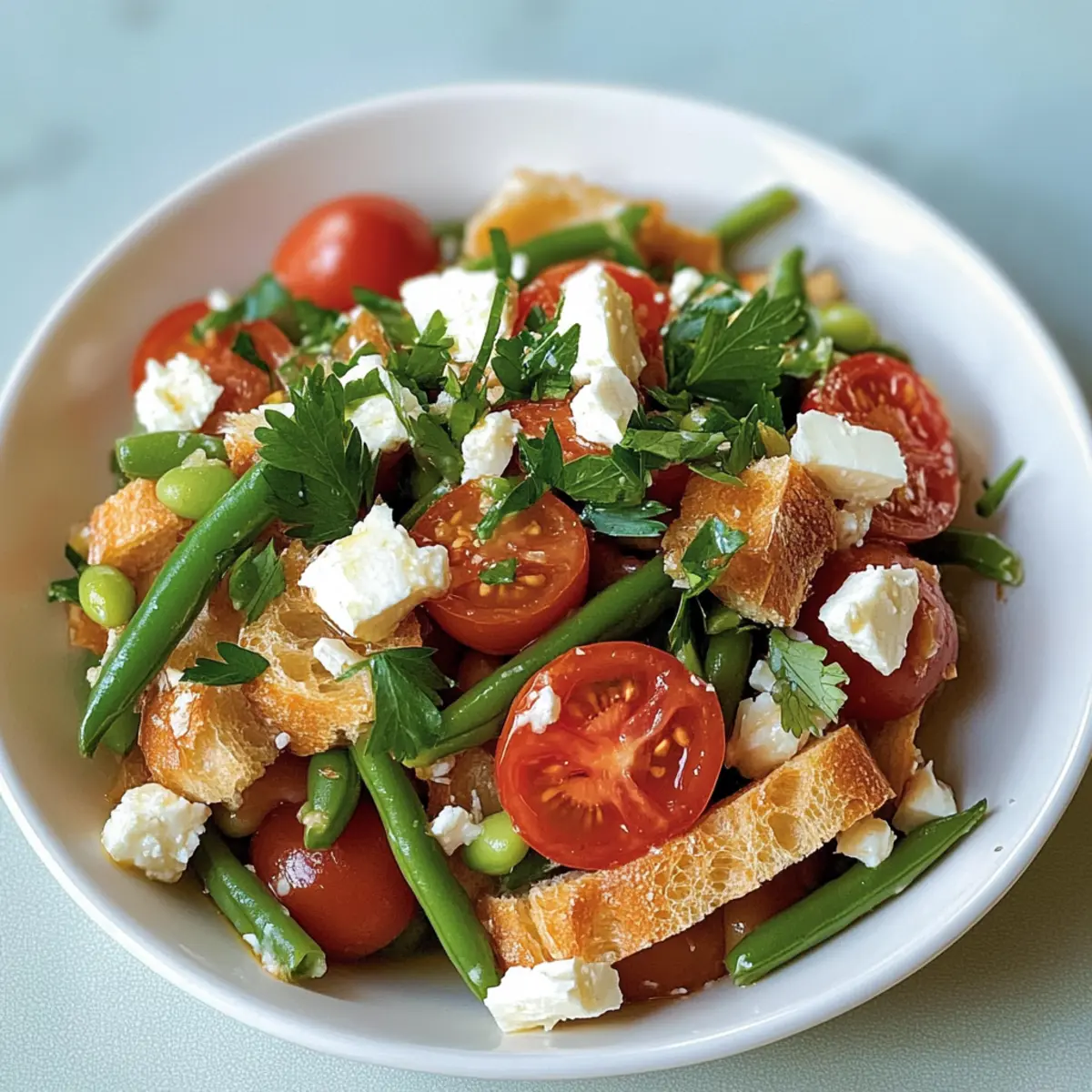 Frische Zutaten: Die Kombination aus grünen Bohnen, saftigen Tomaten und knackigem Brot sorgt für ein Geschmackserlebnis, das begeistert. Einfach zuzubereiten: In nur wenigen Schritten entsteht ein schmackhafter Salat, der wenig Aufwand erfordert. Vielseitige Anpassung: Fügen Sie nach Belieben andere Kräuter oder Gemüse hinzu, um Ihren persönlichen Twist zu kreieren. Gesund und nährstoffreich: Mit reichlich Ballaststoffen und Eiweiß ist dieser Salat perfekt für eine ausgewogene Ernährung. Ideal für jede Gelegenheit: Ob als leichtes Mittagessen oder festliche Beilage, dieser Bohnen-Brot-Salat ist ein Hit bei jeder Zusammenkunft. Genießen Sie ihn allein oder kombinieren Sie ihn mit gegrilltem Fleisch für ein köstliches Erlebnis!
