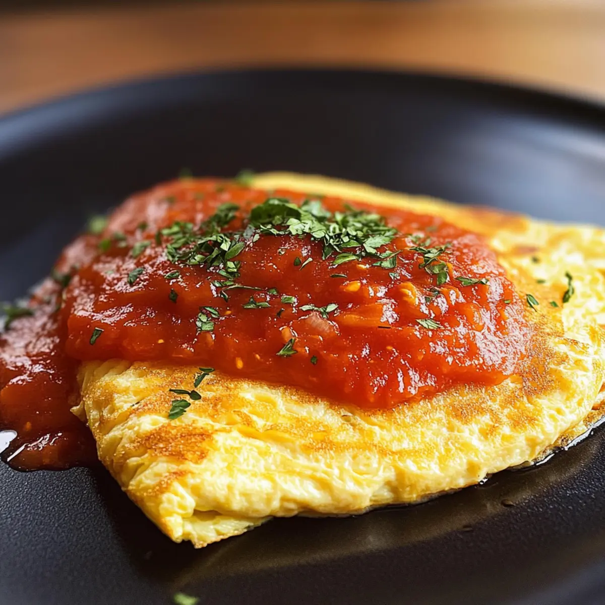 Soufflé-Omelette mit spezieller Tomatensauce geniessen