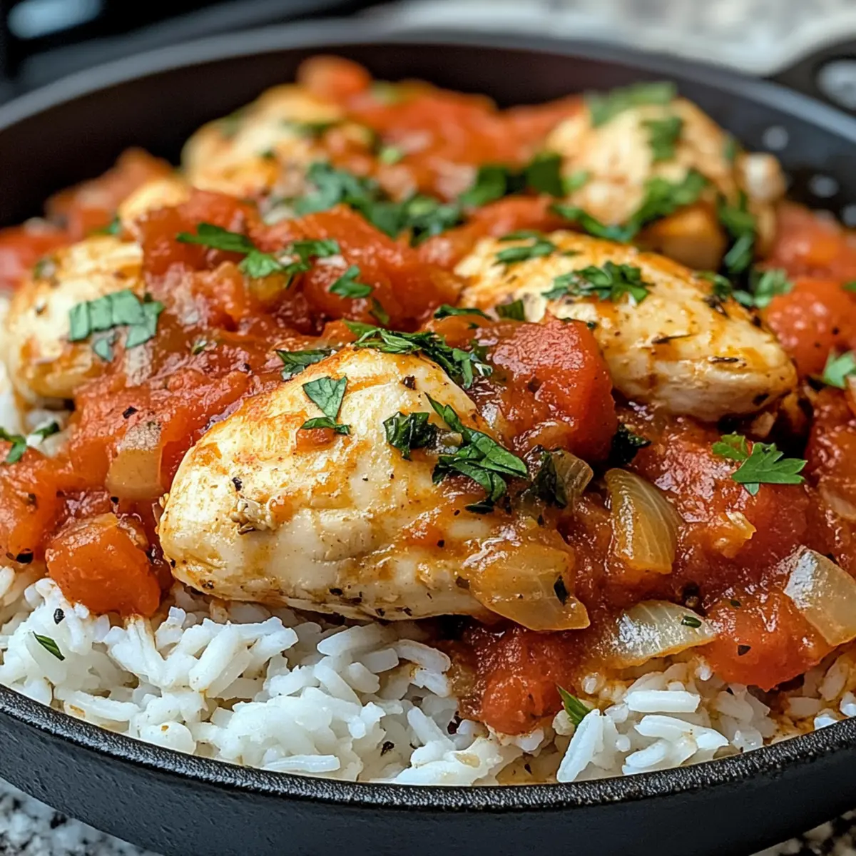 Hähnchen mit Reis und Tomatensoße zum Verlieben