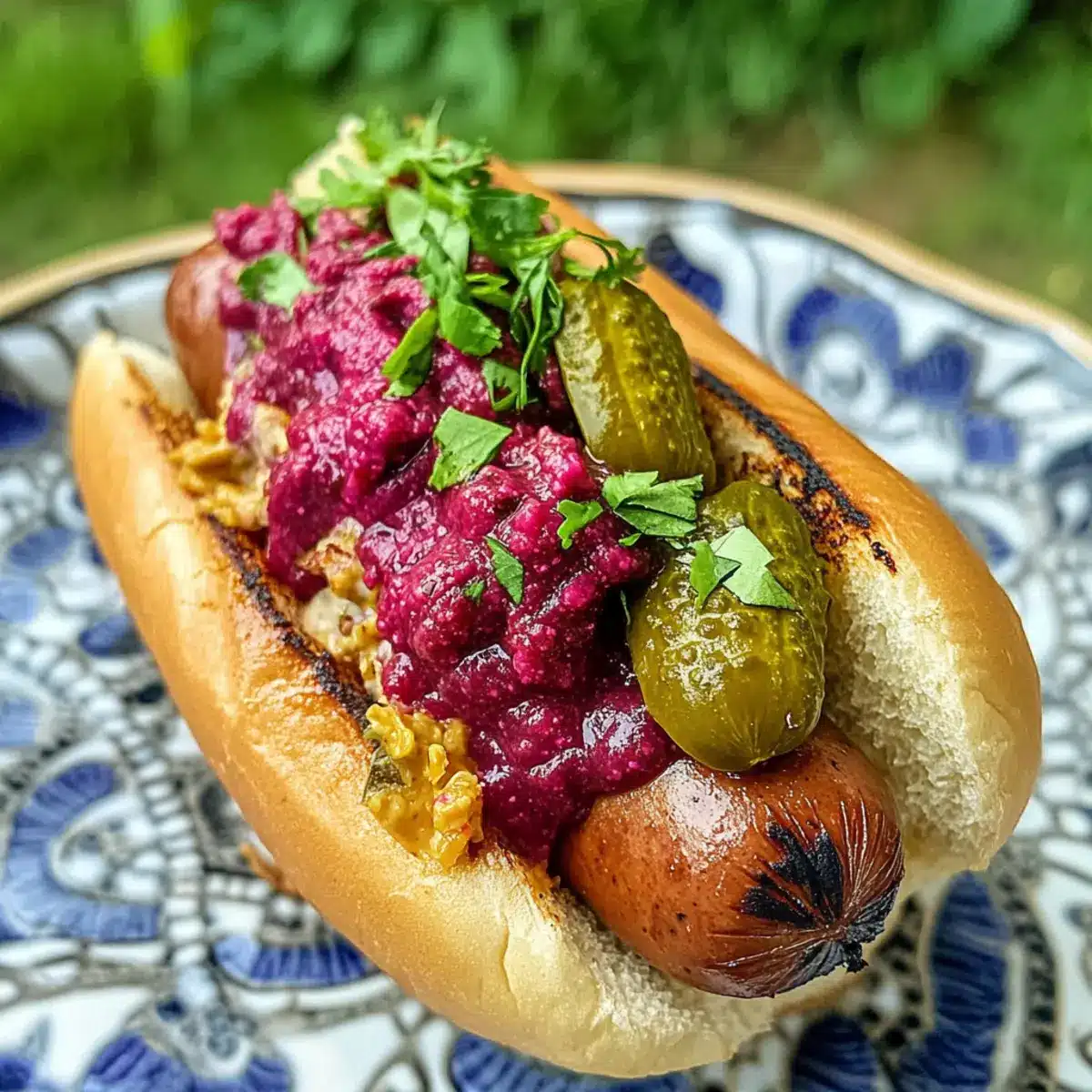 Knaller Hot Dog vom Grill mit Rote Bete Ketchup