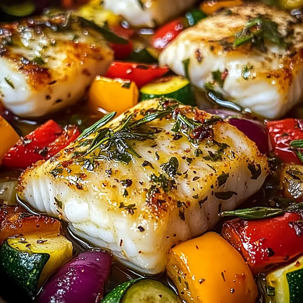 Mediterrane gebackene Fischfilets mit Gemüse genießen