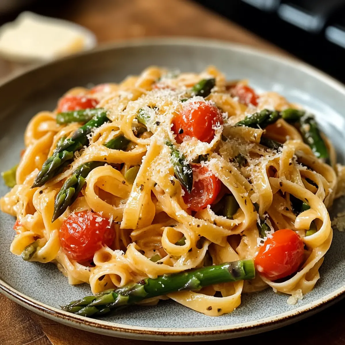 Pasta mit grünem Spargel und Tomaten ganz einfach