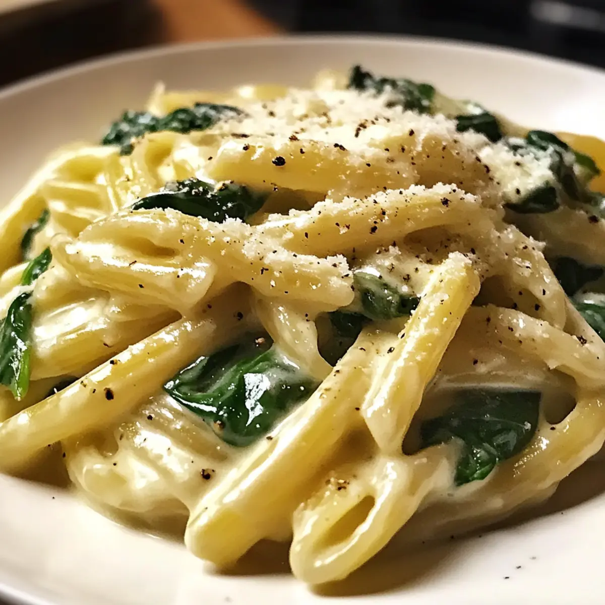 Cremige Spinatpasta für ein Date mit dem Abendessen