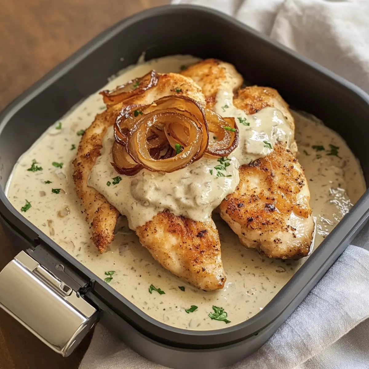 Zwiebel-Sahne-Hähnchen im Airfryer schnell und einfach