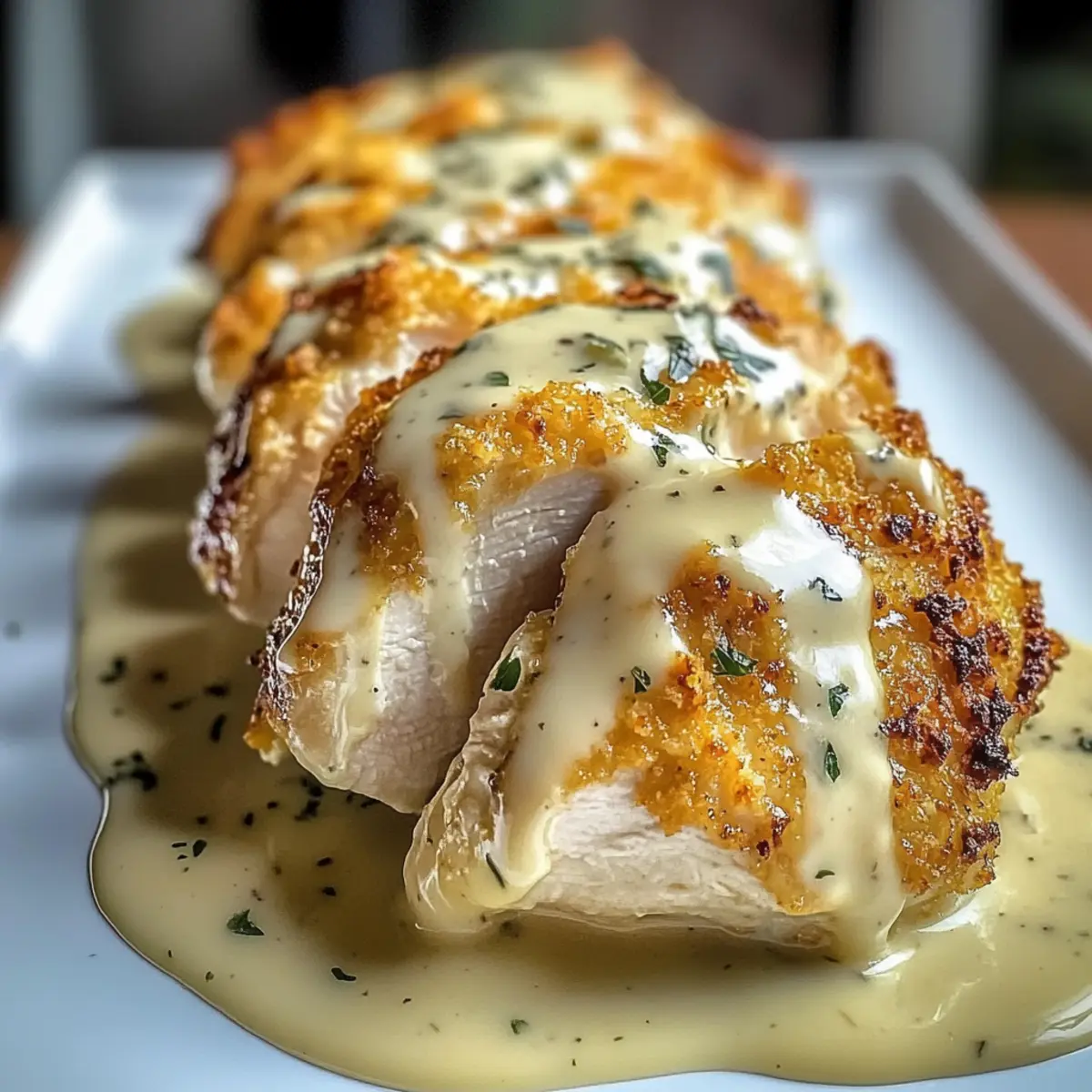 Überbackenes Caesar-Hühnchen mit cremiger Parmesansoße
