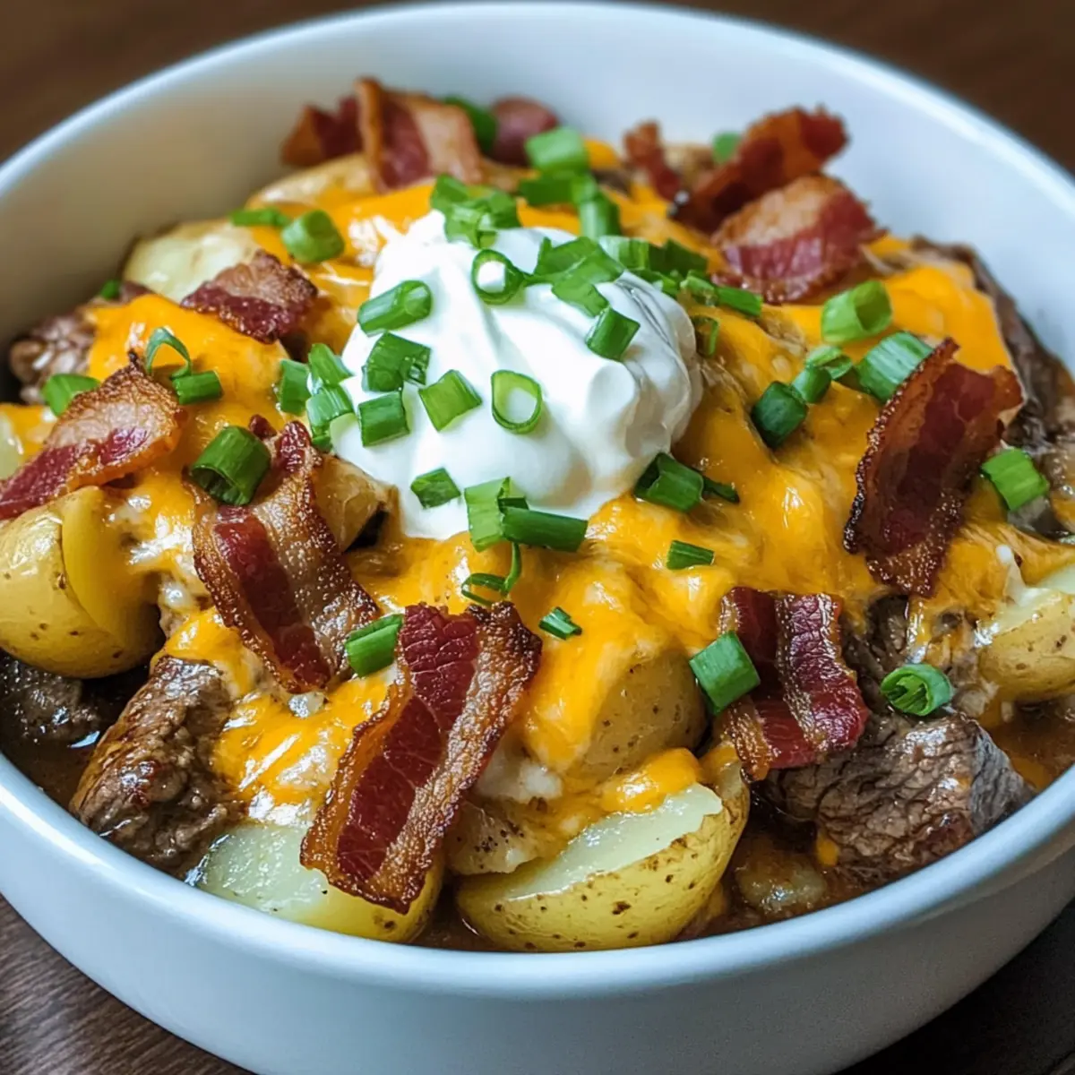 Crockpot Geladene Steak und Kartoffelauflauf Rezept