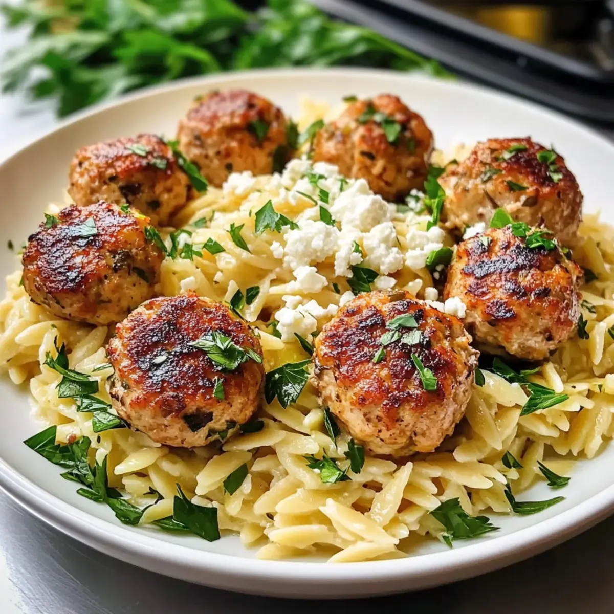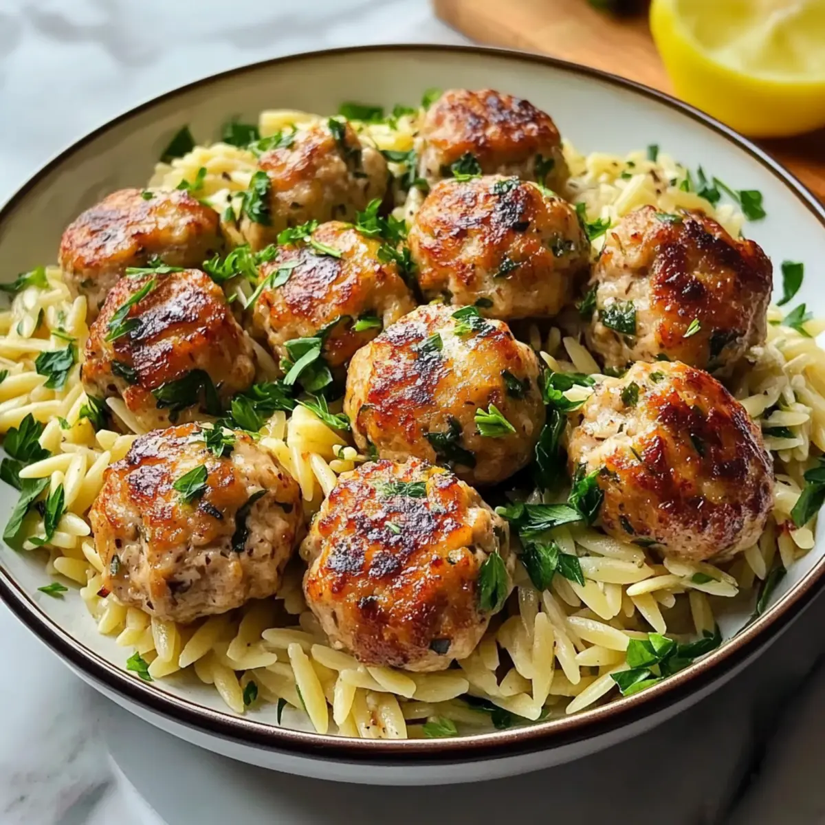 Griechische Hühnchenfleischbällchen mit Zitronen-Orzo Rezept
