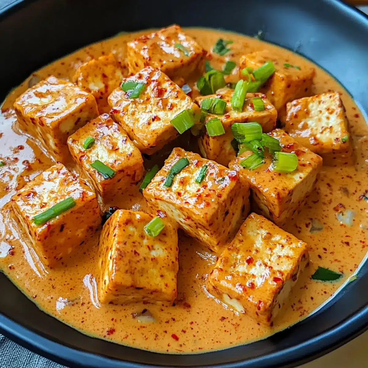 Leckeres würziges Tofu mit cremiger Kokosnusssauce