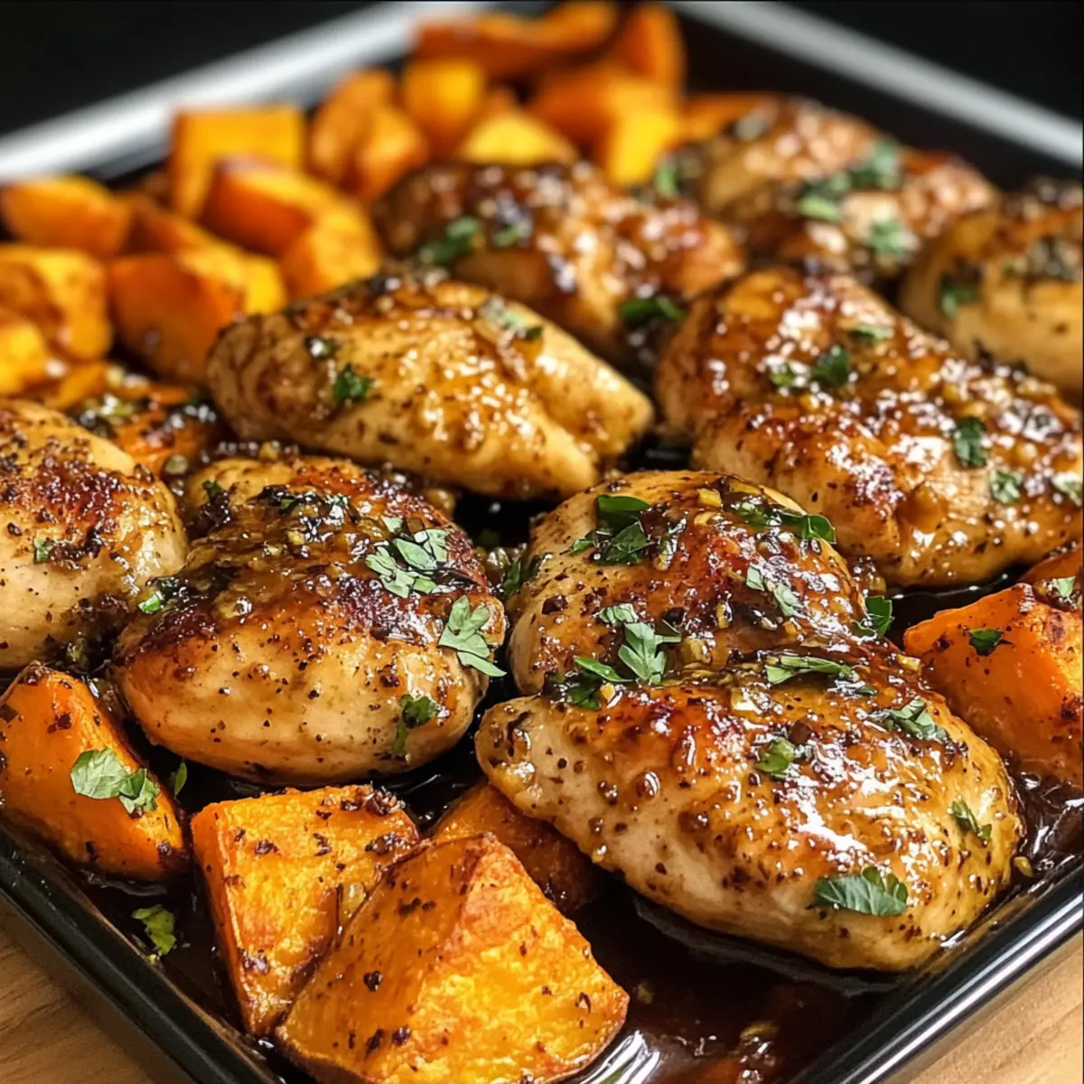 Honig-Knoblauch-Hühnchen und Süßkartoffel einfach gemacht