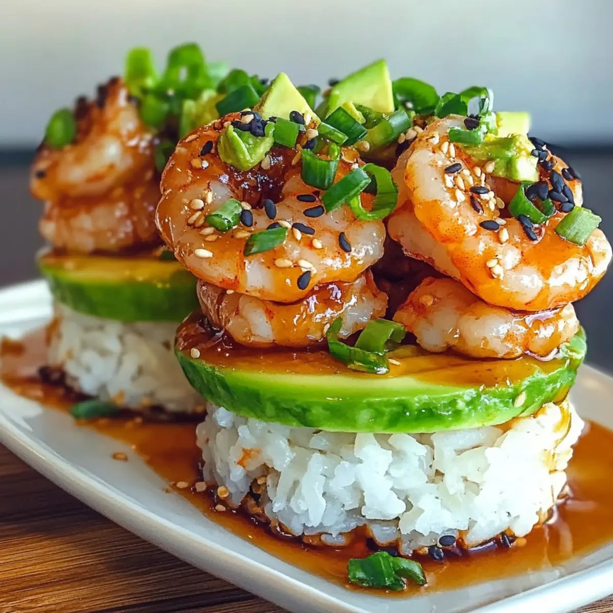Scharfe Garnelen Sushi Türme für Zuhause