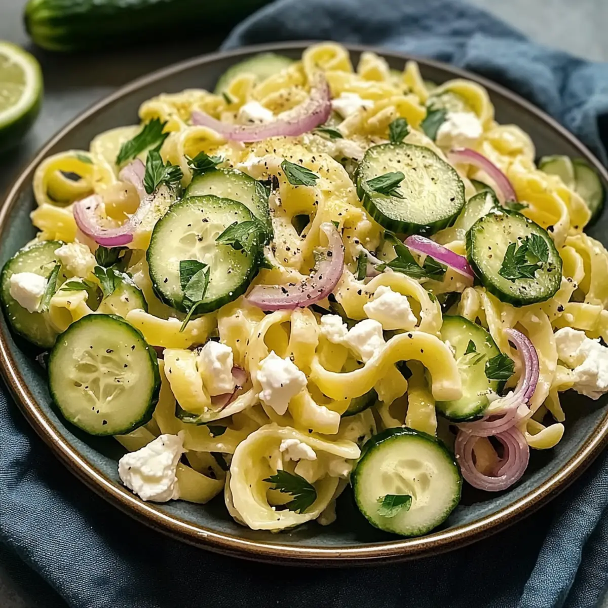 Zitronen-Gurken-Nudelsalat für heiße Sommertage