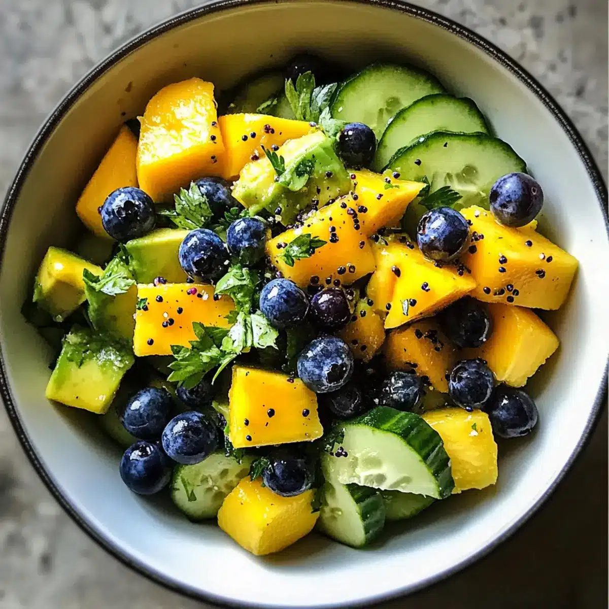 Mango Gurken Salat mit Heidelbeeren und Avocado Rezept