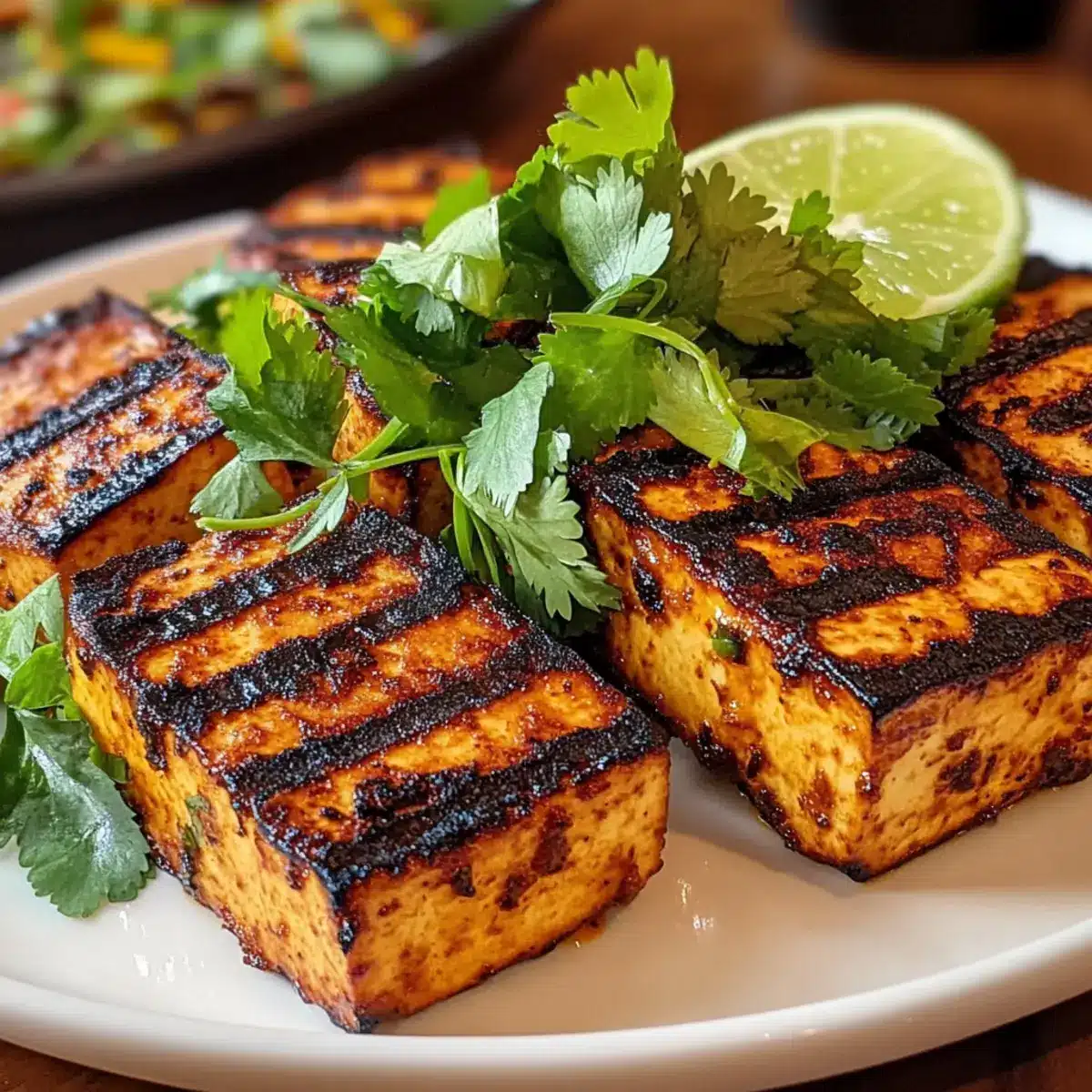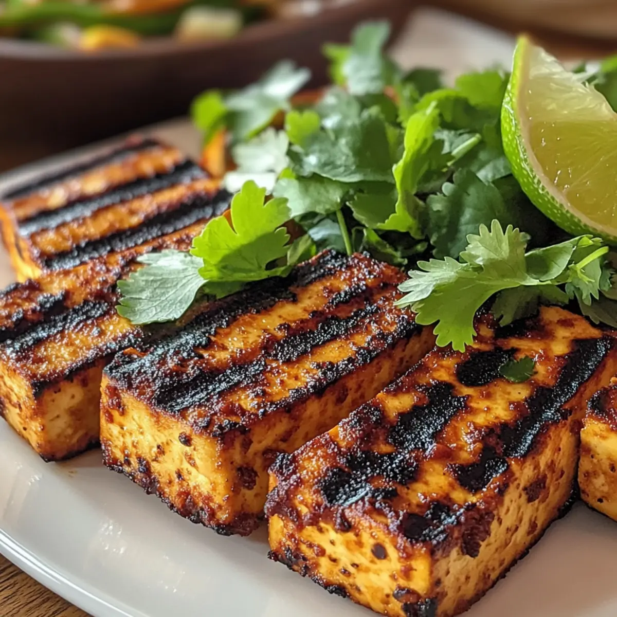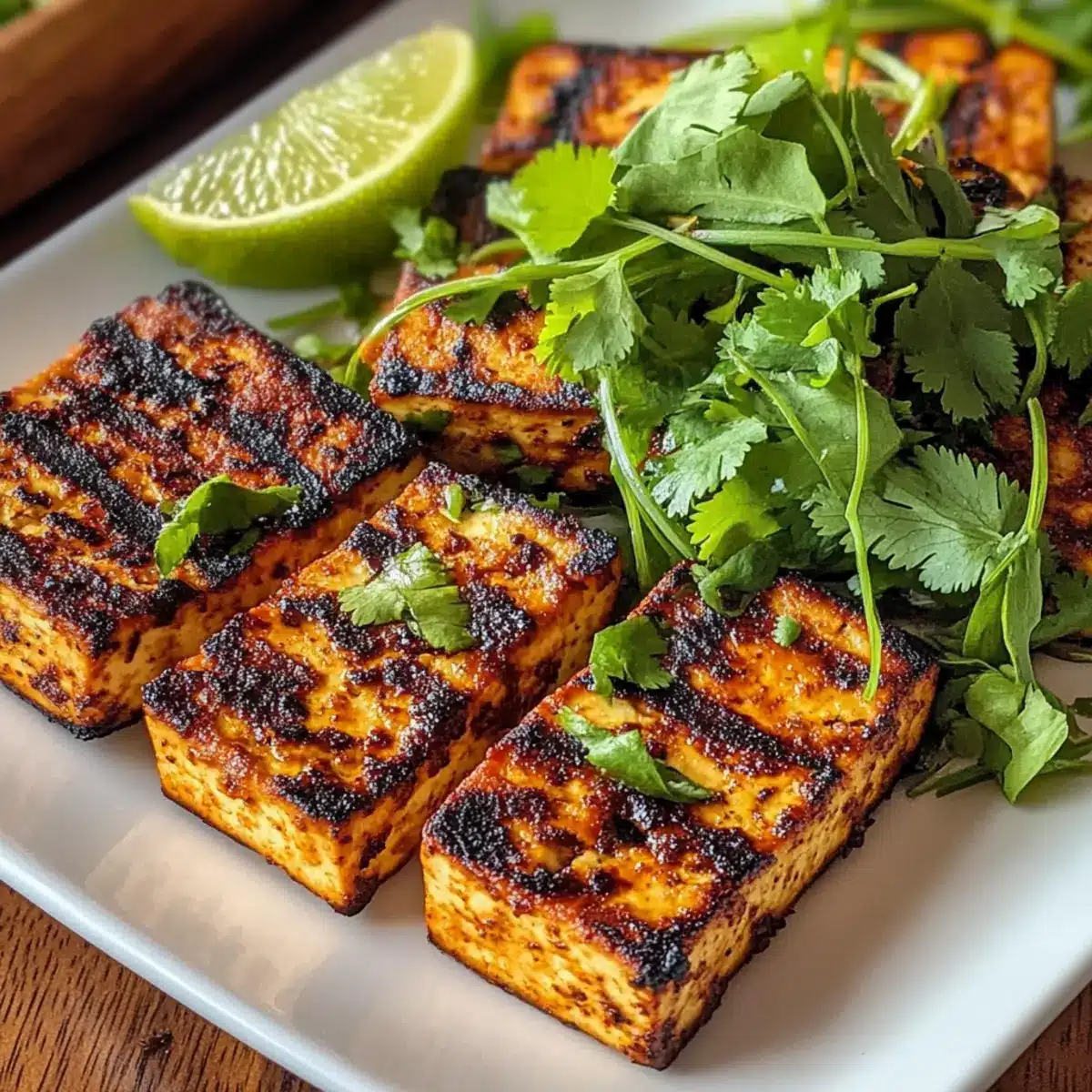 - Nimm den Tofu vom Grill und garniere ihn nach Belieben mit frischem Koriander. Serviere ihn mit einem Spritzer Limettensaft.