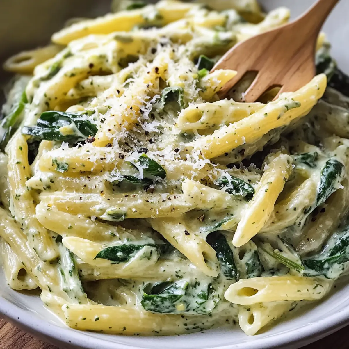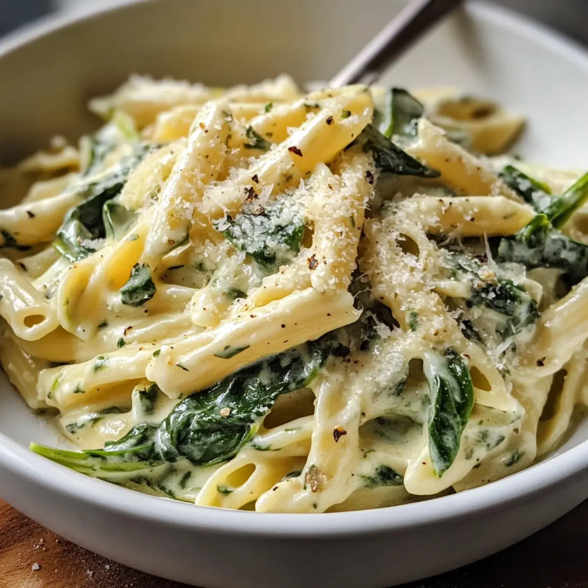 Cremige Spinatpasta für ein Date mit dem Abendessen