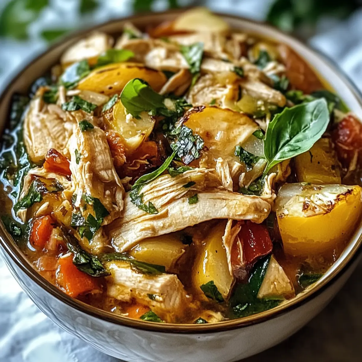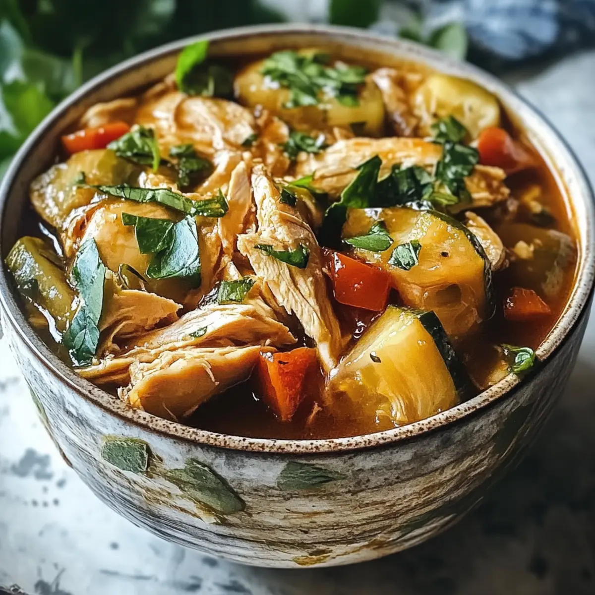 Gießen Sie nun die vorbereitete Sauce gleichmäßig über das Hähnchen und das Gemüse. Stellen Sie sicher, dass alles gut benetzt ist, da die Sauce die Aromen intensiviert. Die Flüssigkeit wird beim langsamen Kochen des Crockpot-Heirats-Hähnchens in die Zutaten eindringen und für ein wunderbar saftiges Ergebnis sorgen.