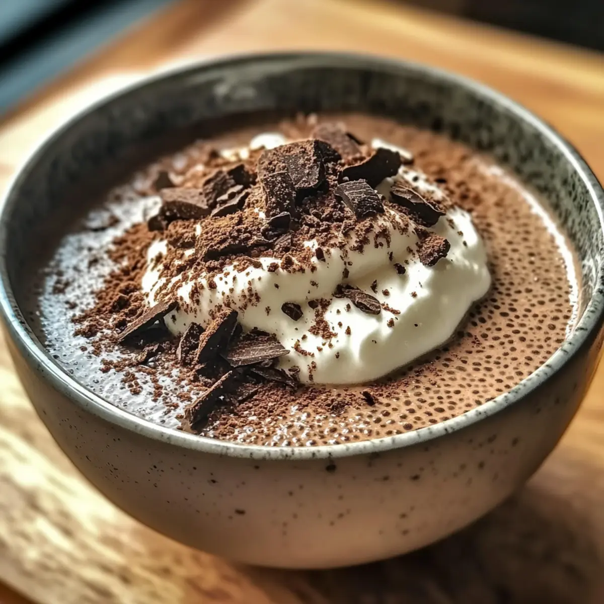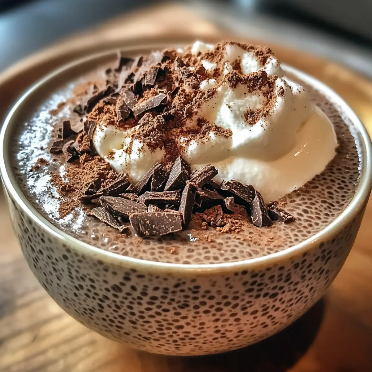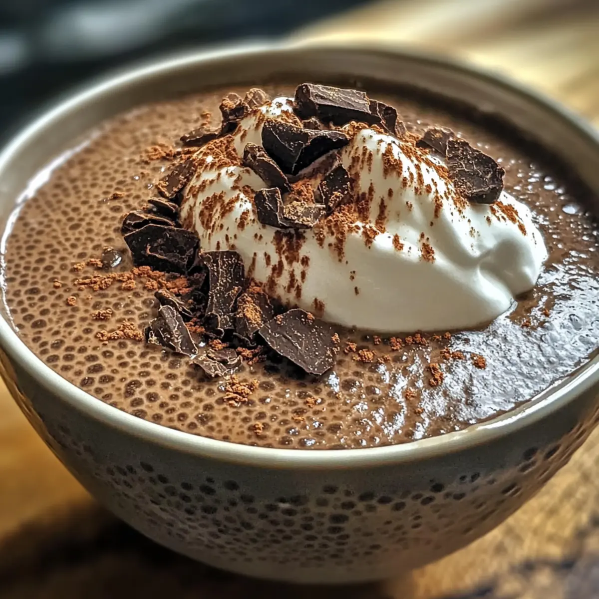 Rühre den Pudding vorsichtig um, bevor du ihn in Schalen oder Gläser füllst. Garniere ihn nach Belieben mit Kokoscreme, Kakaopulver oder frischen Beeren. Diese zusätzlichen Toppings bringen Farbe und Textur und machen dein Frühstück noch schmackhafter.