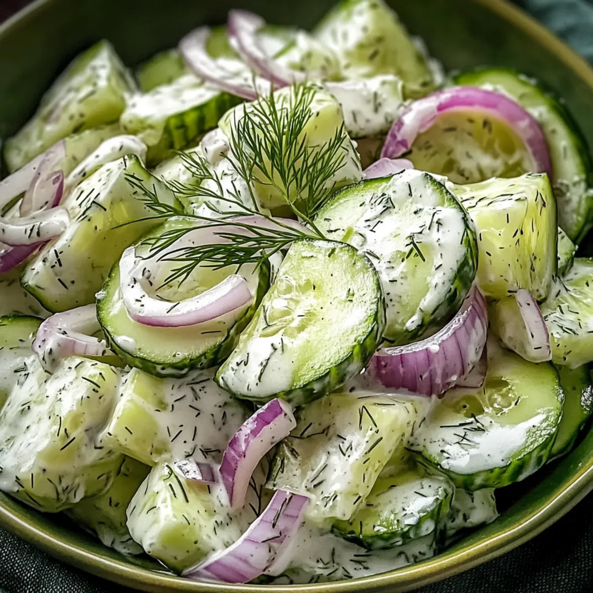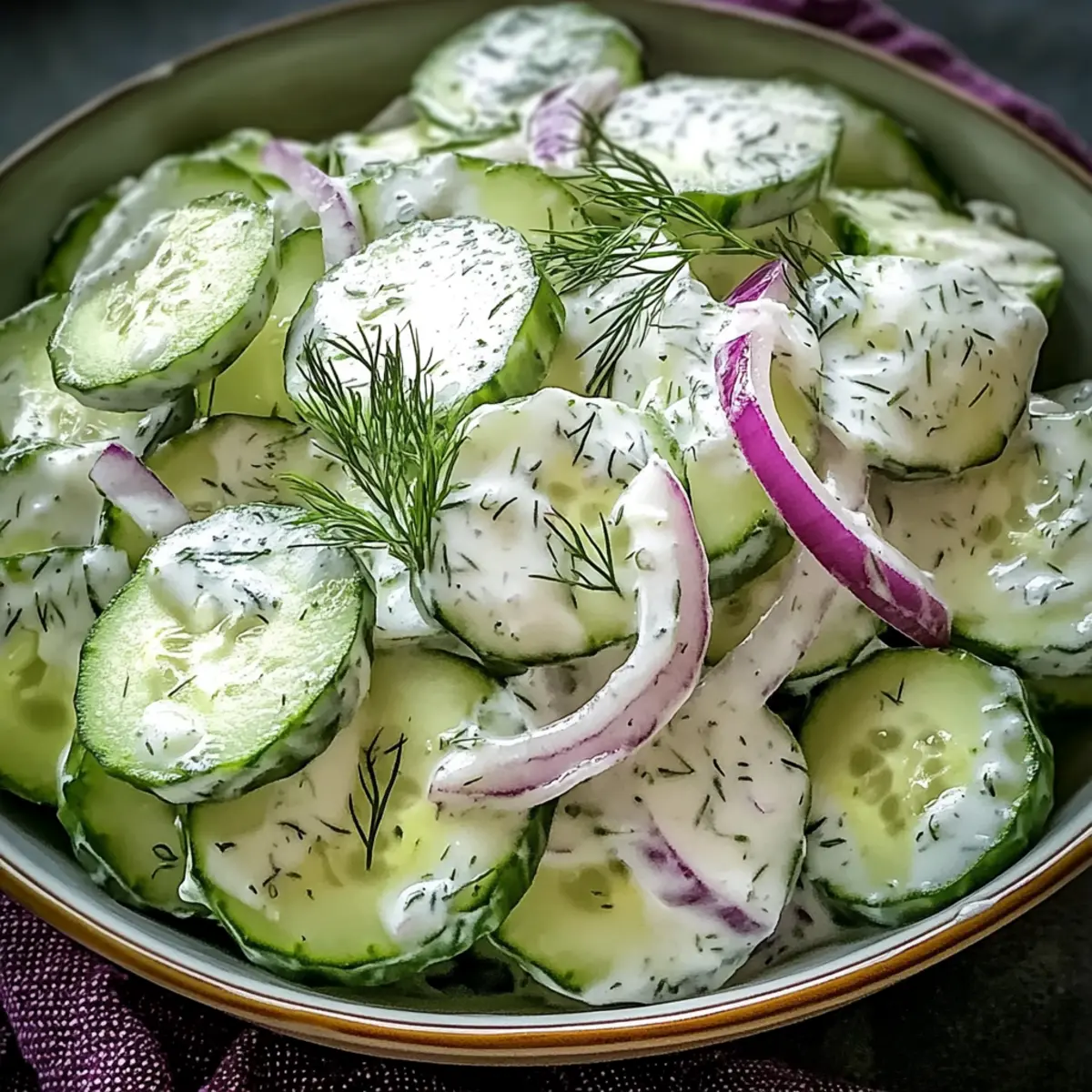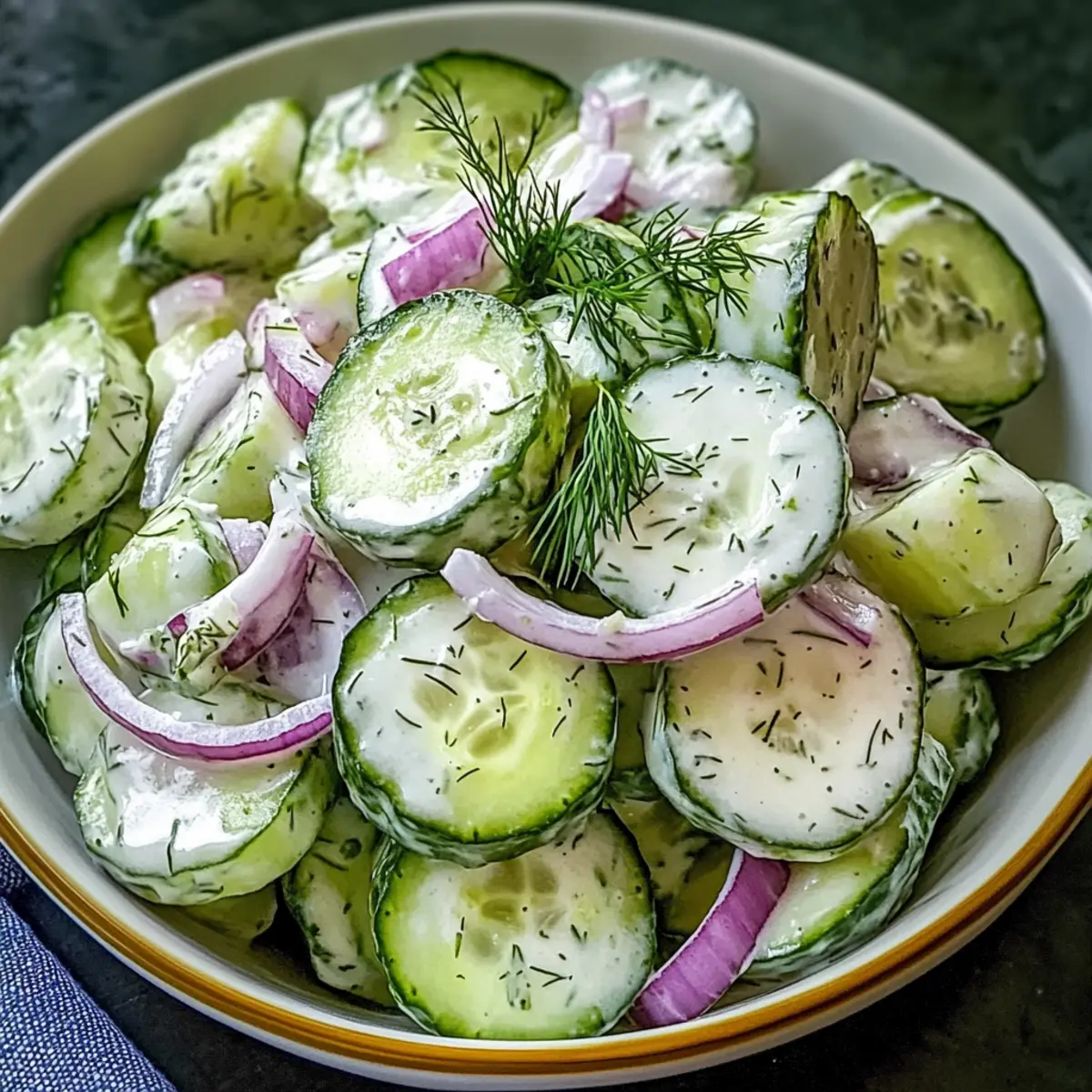 Dieser einfache cremige Gurkensalat ist eine wunderbare Beilage zu gegrilltem Fleisch, Burgern oder Sandwiches. Er ergänzt die herzhaften Aromen und bietet eine erfrischende Nuance. Perfekt zu einem sommerlichen BBQ oder Picknick, bleibt er ein Hit auf jedem Tisch!