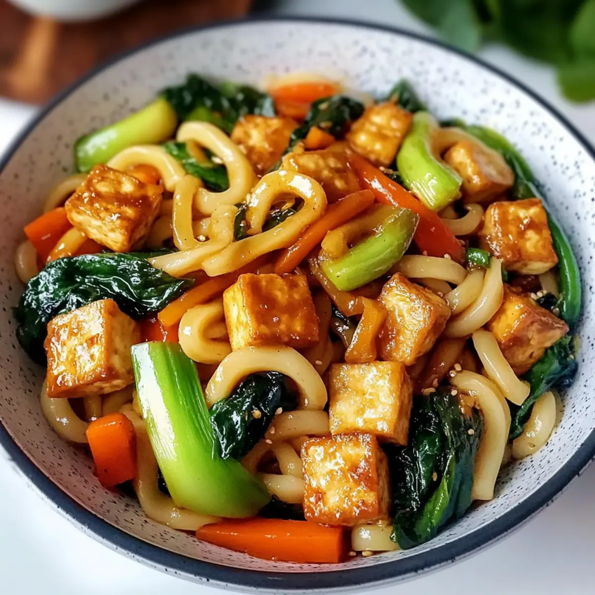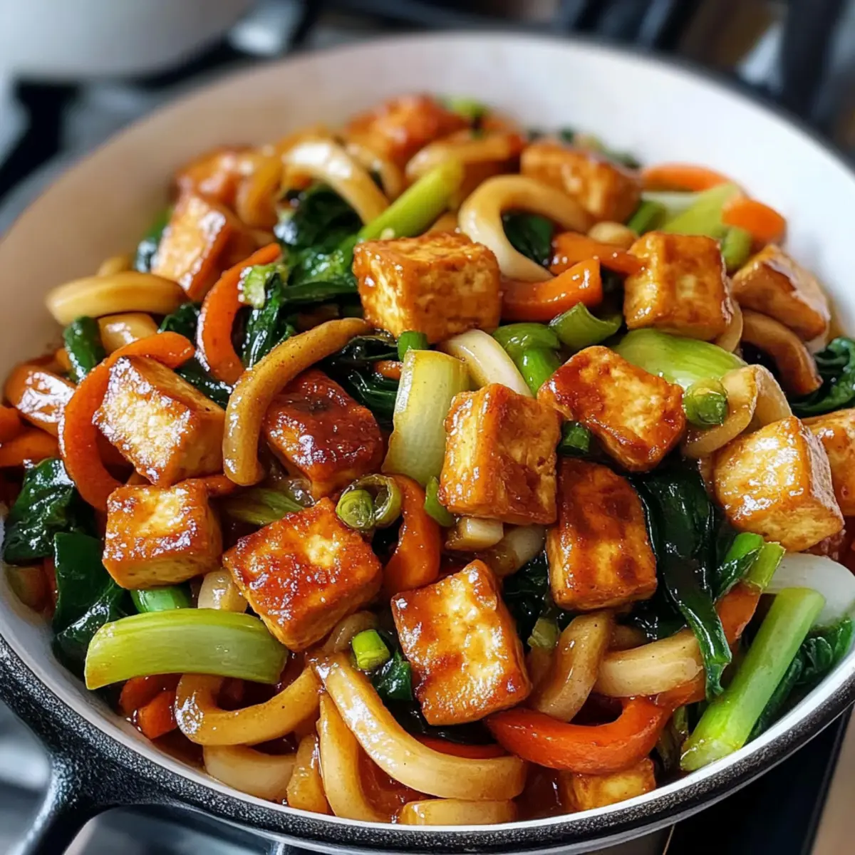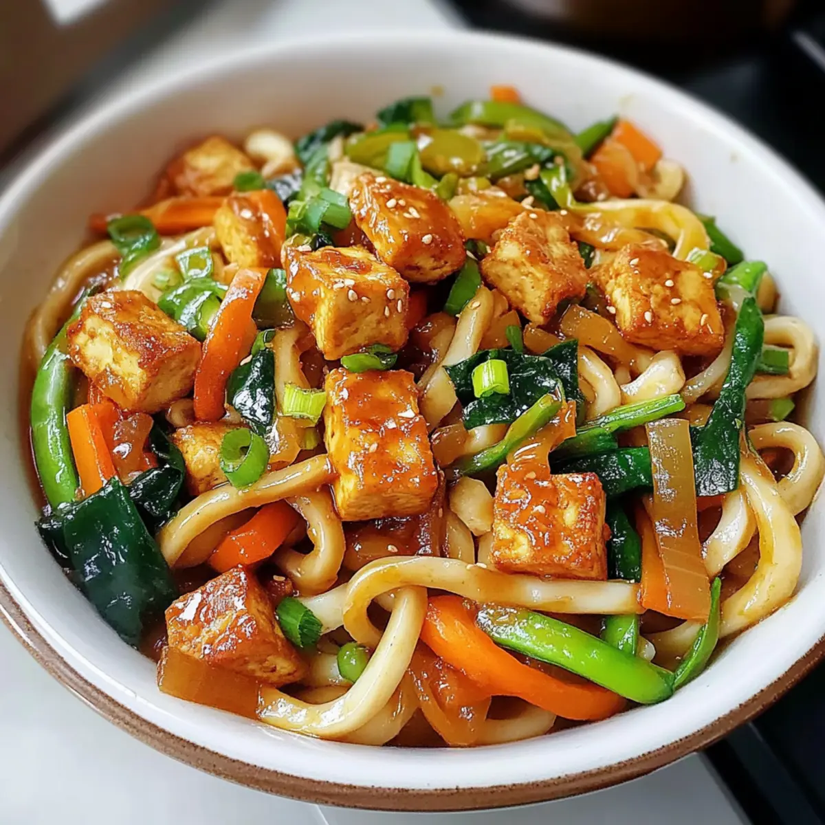 Einfache Tofu Udon Pfannengericht für schnelles Kochen