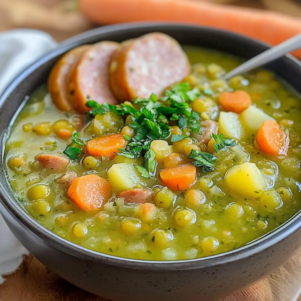 Anmerkung: Diese Zutatenliste hilft Ihnen, die perfekte Erbsensuppe mit Schälerbsen zuzubereiten, ideal für kalte Tage!
