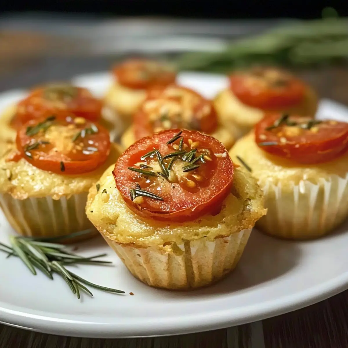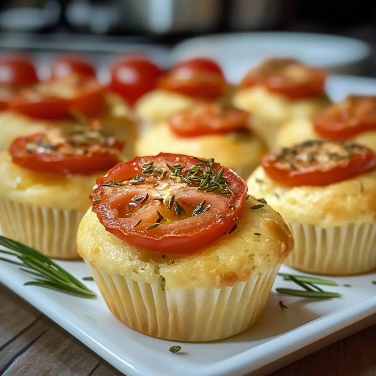 Kleine Focaccia Muffins mit Tomate und Rosmarin für Gartenpartys
