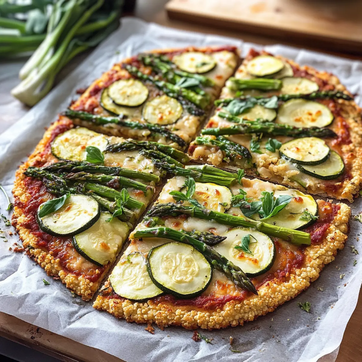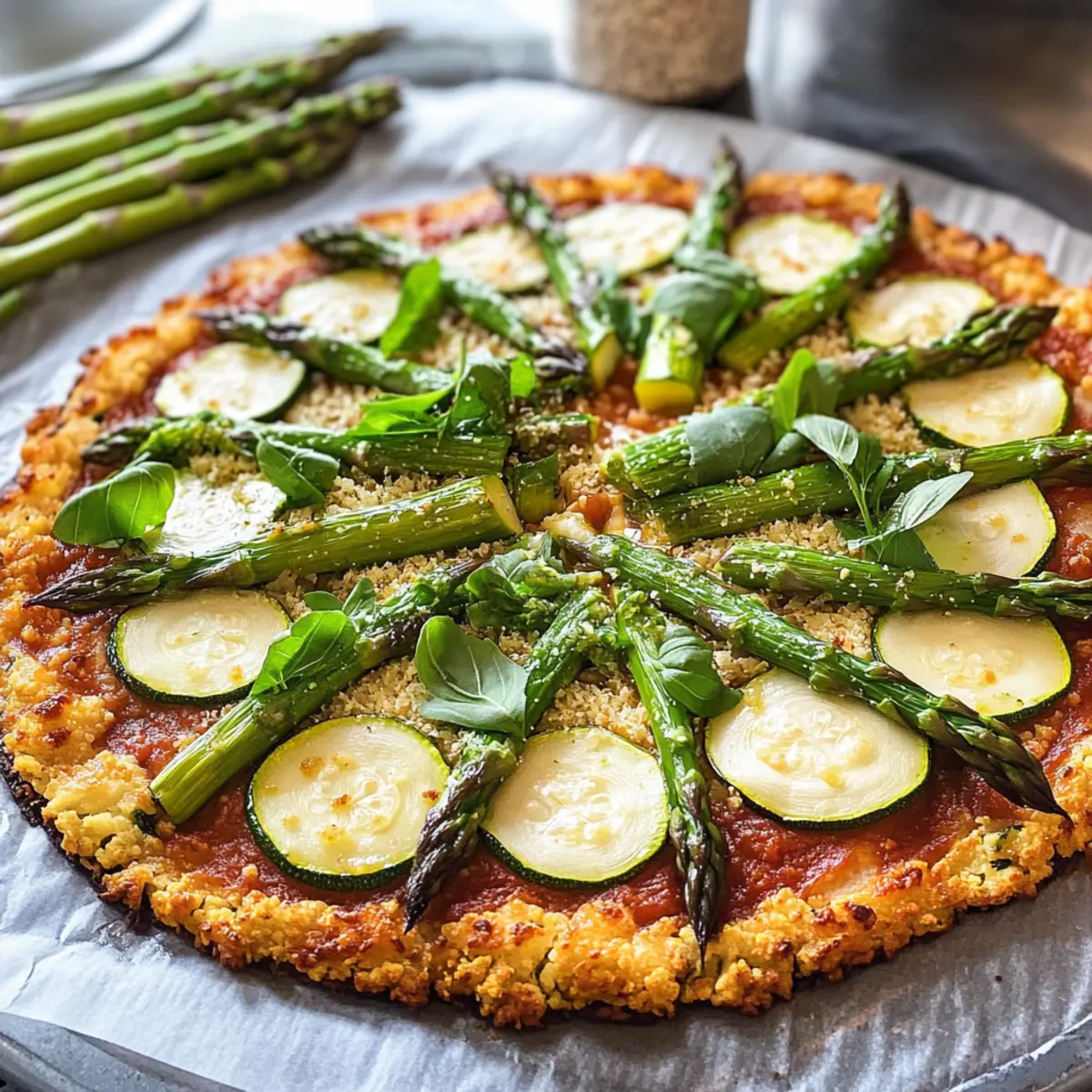 Genieße unsere Grüne Pizza Power: Blumenkohl-Pizza mit grünem Spargel – eine schmackhafte und gesunde Art, Gemüse in deine Mahlzeiten zu integrieren!