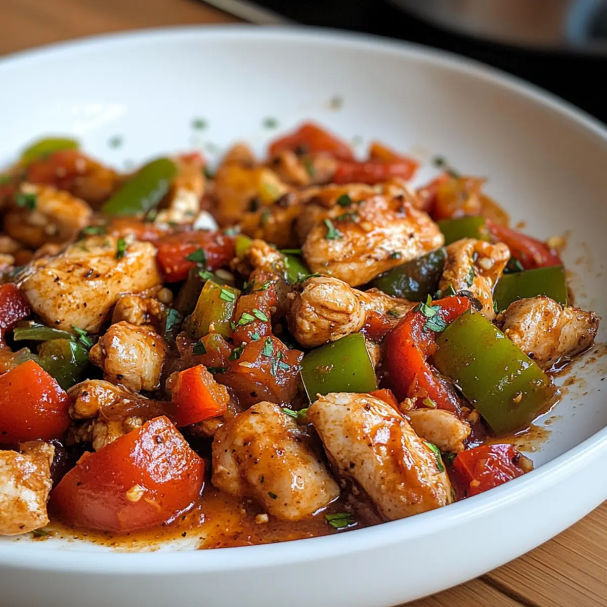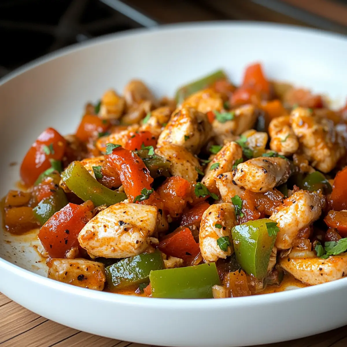 Scharf: Fügen Sie frische Chili oder mehr Pul biber hinzu, um der Hähnchen-Paprika-Pfanne eine feurige Note zu verleihen. Diese Ergänzung sorgt für einen herzhaften Kick und erhöht das Geschmackserlebnis.
