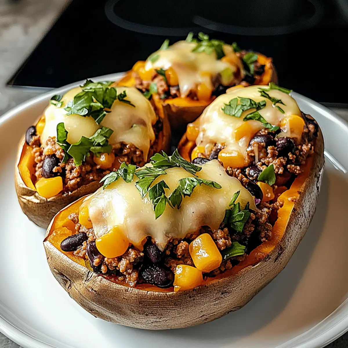 Einfache Zubereitung: Dieses Rezept benötigt nur wenige Schritte und ist somit perfekt für hektische Wochentage. Vielseitig und anpassbar: Du kannst verschiedene Füllungen ausprobieren, sei es mit Rinderhackfleisch oder einer vegetarischen Option mit Tofu. Gesunde Zutaten: Die Kombination aus Süßkartoffeln, Bohnen und frischem Gemüse macht es nahrhaft und nährstoffreich. Familienfreundlich: Dieses Gericht kommt bei Groß und Klein gleich gut an und lässt sich wunderbar teilen. Schnell und lecker: In weniger als 30 Minuten zauberst du ein schmackhaftes Abendessen auf den Tisch, das nach mehr verlangt!