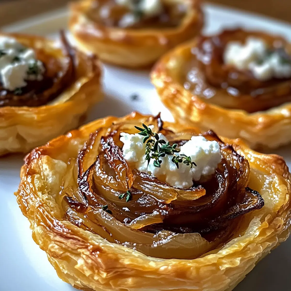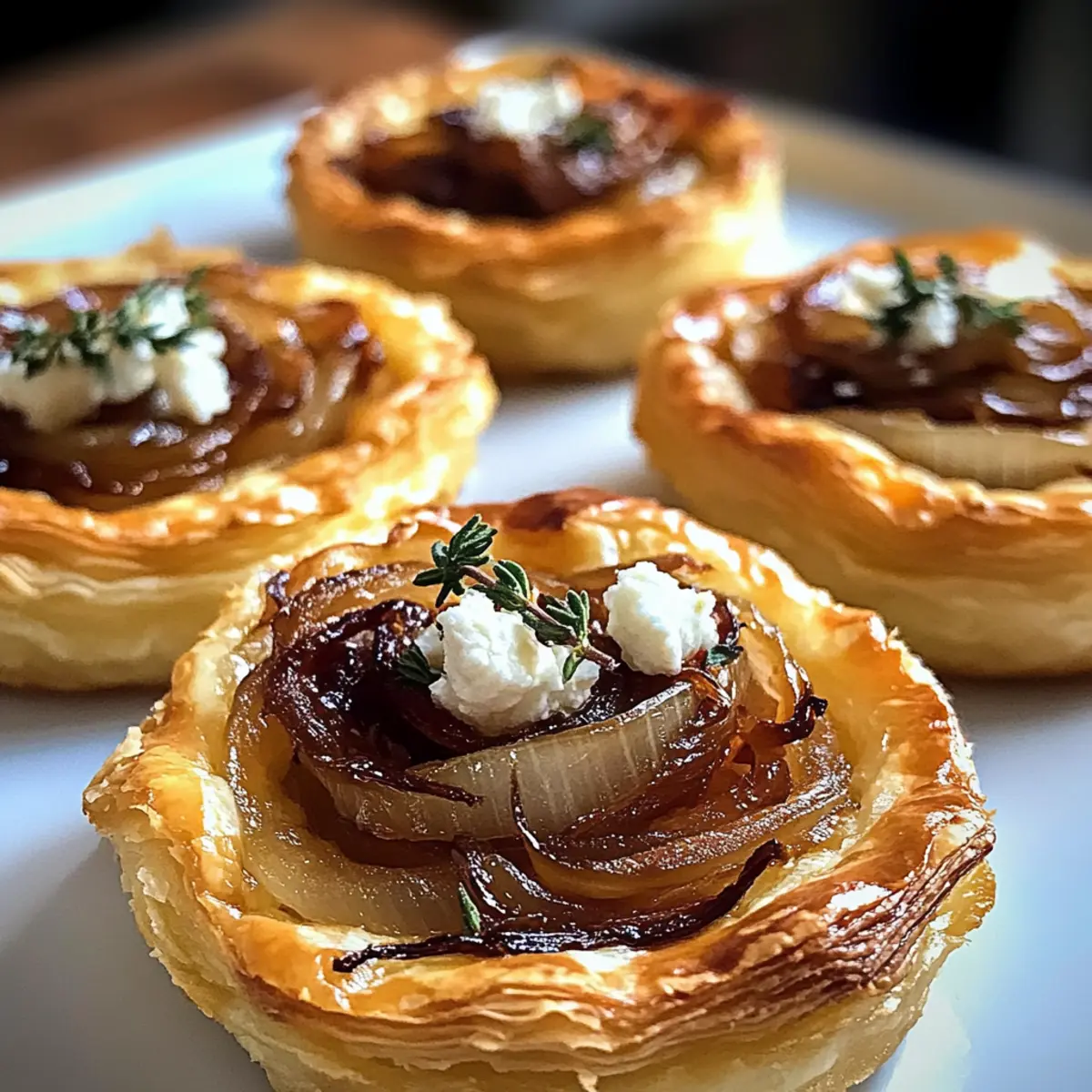 Diese karamellisierten Zwiebel- und Ziegenkäsetörtchen sind ein wahrhaftiges Fest für die Sinne.