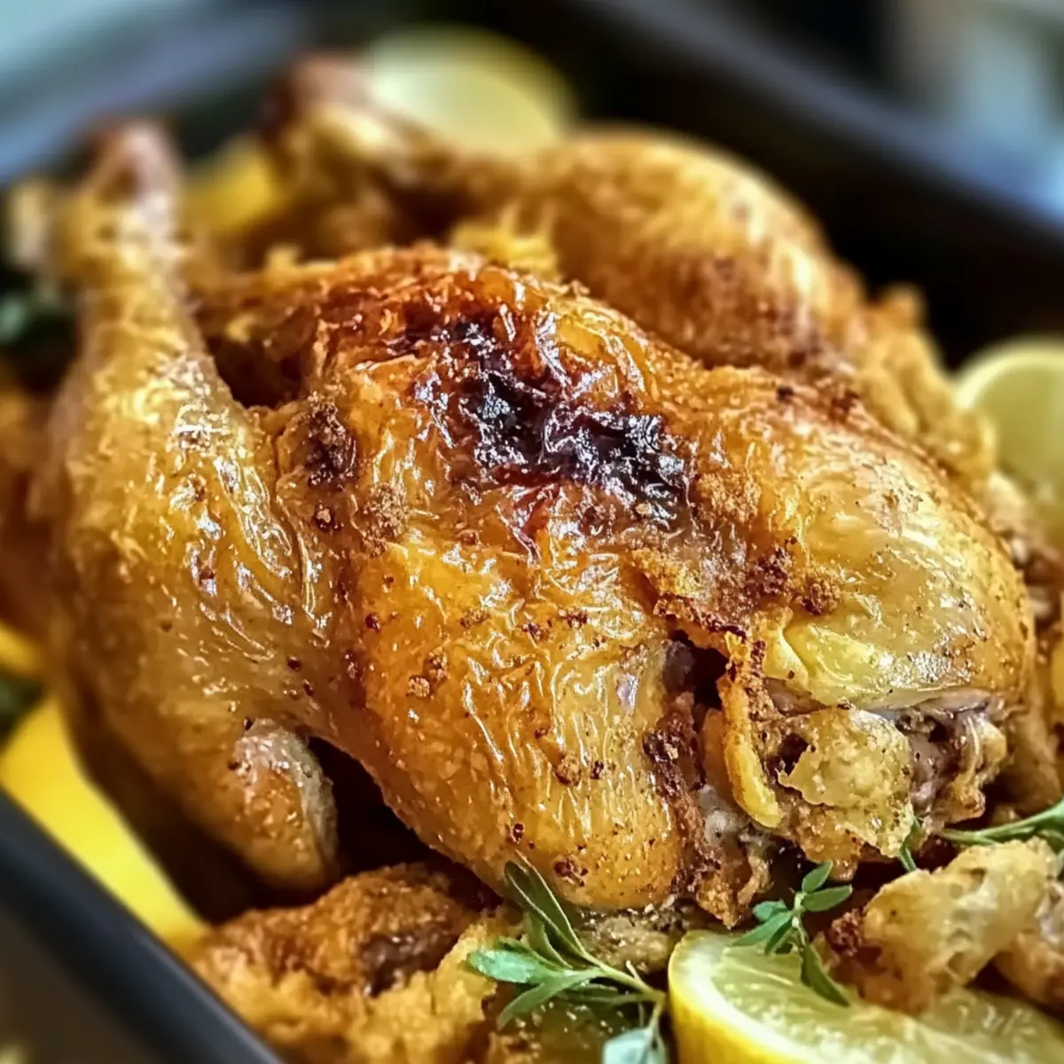 Das Knusprige Brathähnchen eignet sich hervorragend für Meal Prep! Du kannst die Marinade bis zu 24 Stunden im Voraus zubereiten und das Hähnchen damit einreiben, um den Geschmack zu intensivieren. Lagere das marinierte Hähnchen während dieser Zeit in einem luftdichten Behälter im Kühlschrank, um die Frische zu bewahren. An deinem Festtag musst du dann nur noch den Ofen auf 220°C vorheizen, das Hähnchen mit Zitronenscheiben und optional frischen Kräutern füllen und es für etwa eine Stunde braten. So hast du ein köstliches Gericht mit minimalem Aufwand und in kurzer Zeit auf der Festtafel – genau das richtige für stressige Abende!