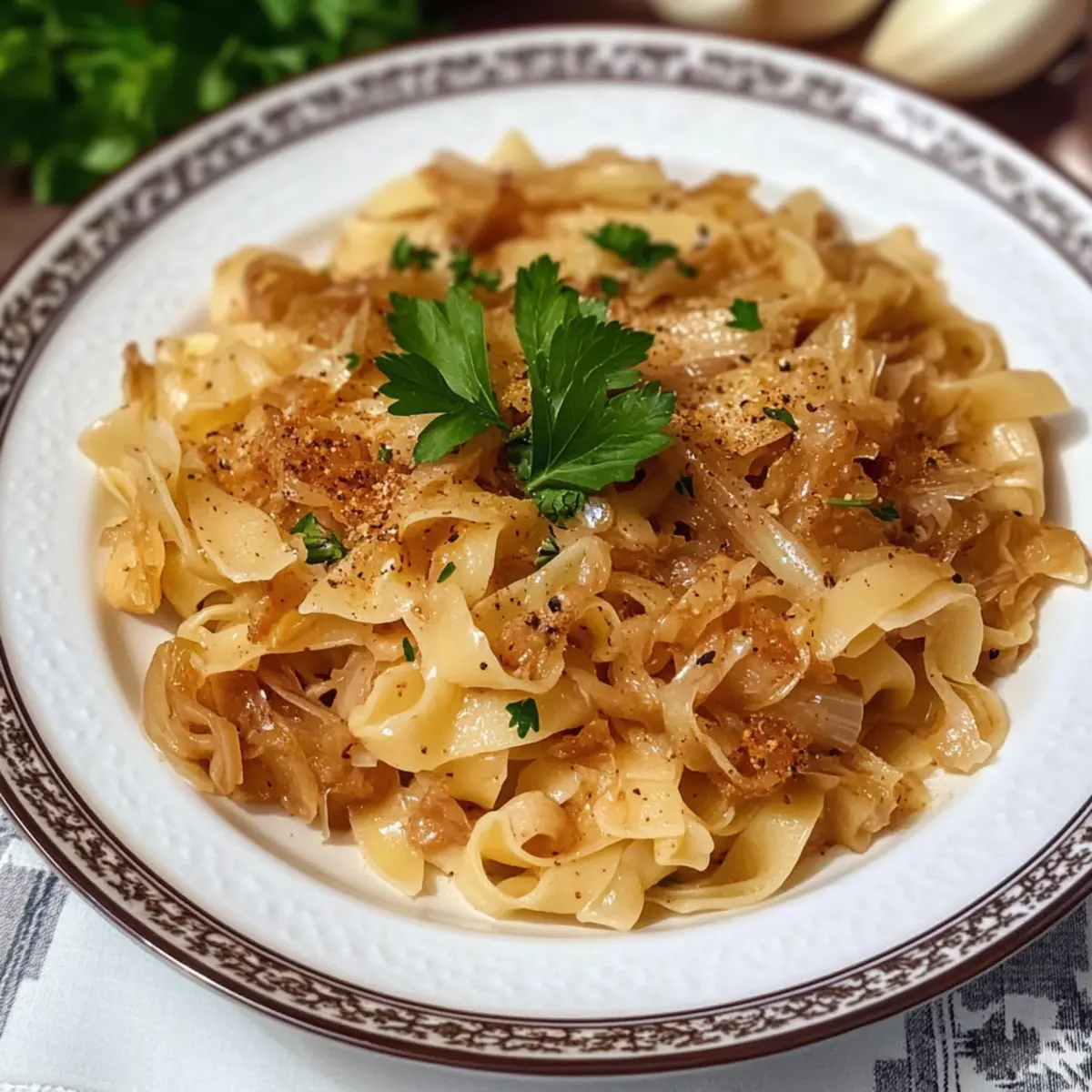 - Richte die Krautfleckerl auf Tellern an und garniere sie mit frisch gehackter Petersilie.