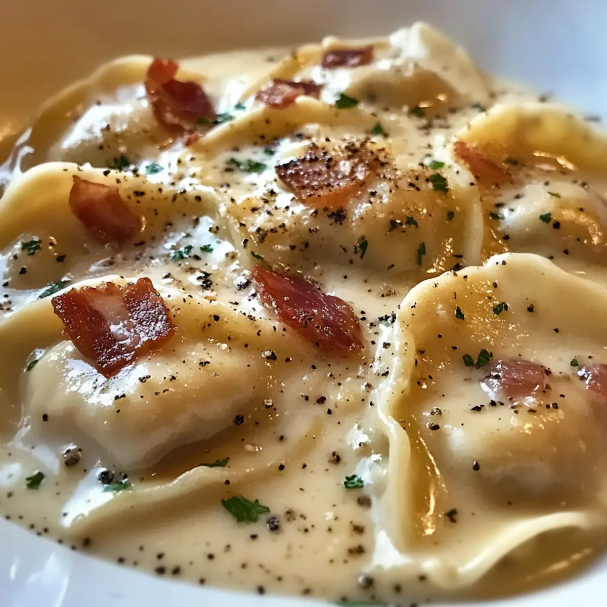 Verführerisches Geschmackserlebnis: Die Kombination aus würzigem Pancetta und cremiger Soße verleiht den Maultaschen eine besondere Note.