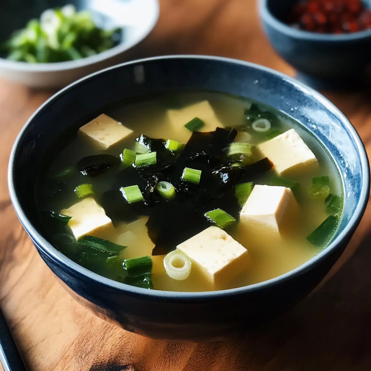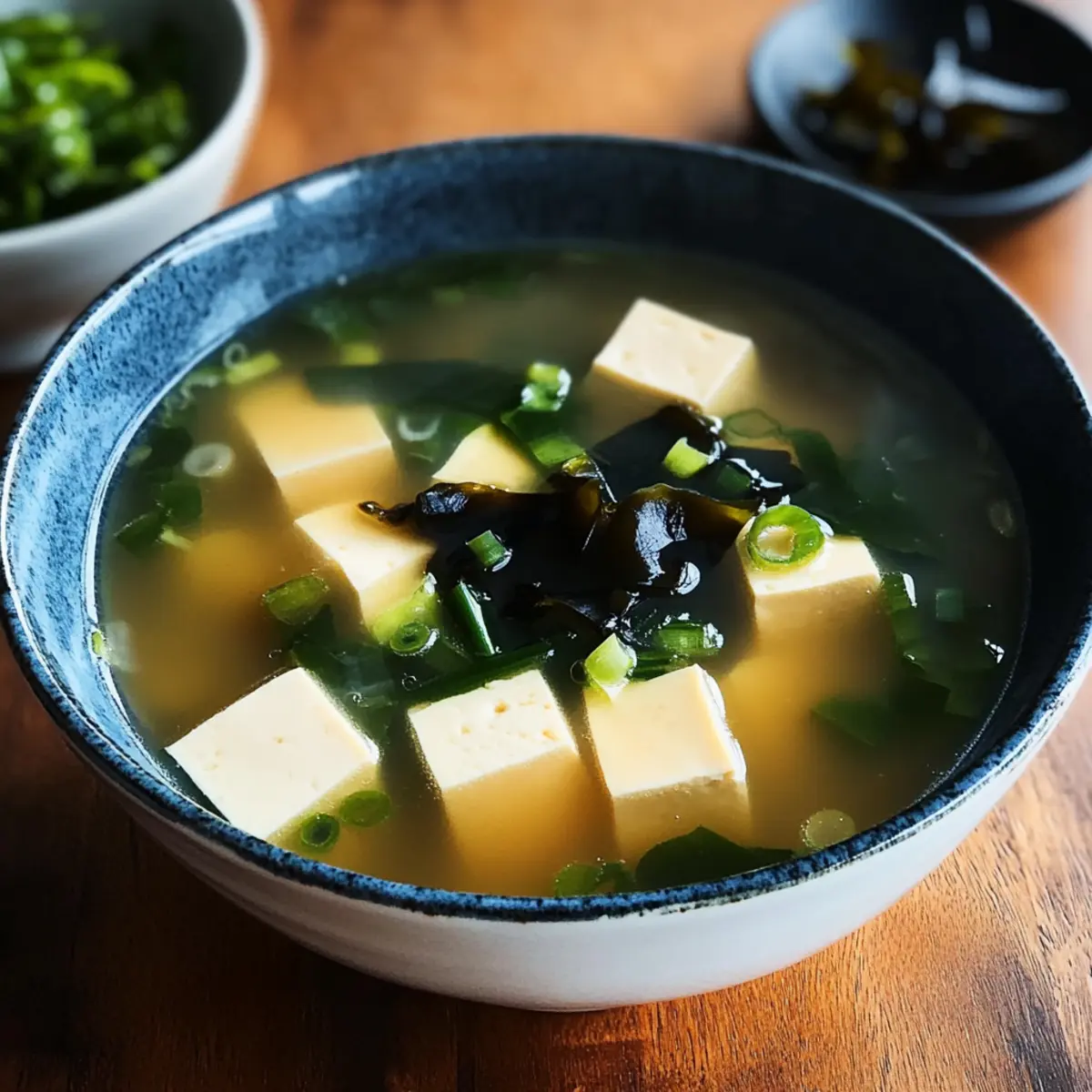 Einfachheit, die begeistert: Die Zubereitung dieser Miso-Suppe ist kinderleicht und benötigt keine umfangreichen Kochkenntnisse. Umami-Explosion: Die reiche und komplexe Umami-Note der Miso-Paste verwandelt jede Schüssel in ein Geschmackserlebnis. Vielseitigkeit in der Küche: Ob als leichtes Mittagessen oder als herzhaftes Abendessen, die Suppe passt zu jeder Gelegenheit. Nährstoffreich und gesund: Dank der Probiotika im Miso und dem Protein aus Tofu ist diese Suppe nicht nur lecker, sondern auch nährstoffreich. Ideal für Ramen-Fans: Verwende gleiche Zutaten für eine fantastische Ramen-Variante und entdecke eine neue Dimension des Genusses, die du auch bei unserem Rezept für Tiramisu Keksbecher erleben kannst!