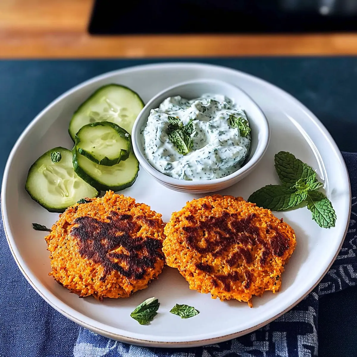 Hinweis: Diese Möhrenpuffer mit Bulgur und Tzatziki sind eine gesunde und schmackhafte Wahl für jede Mahlzeit!
