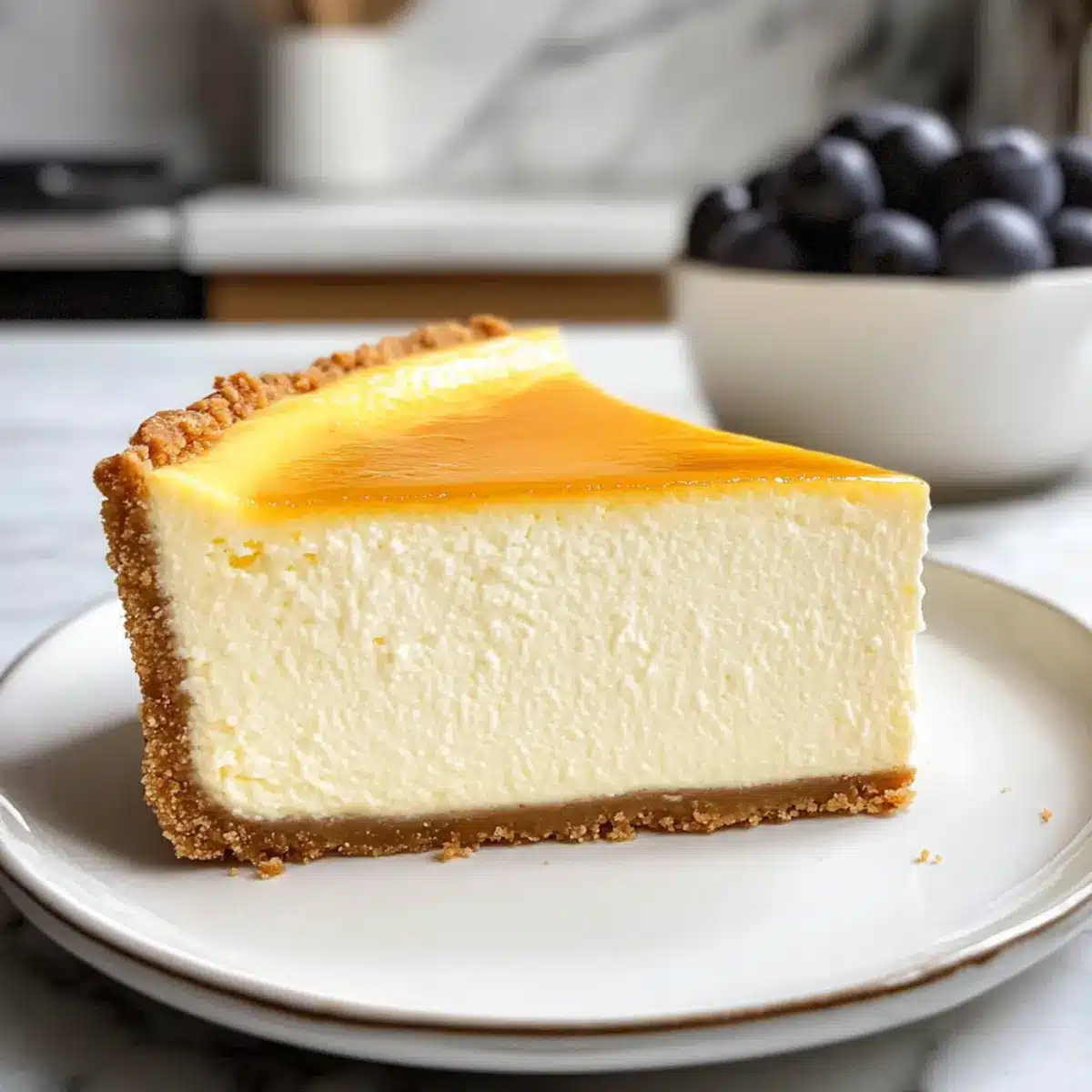 Karamellsauce: Das süße, leicht salzige Karamell bietet einen kontrastreichen Geschmack, der die cremige Füllung des Käsekuchens bereichert.