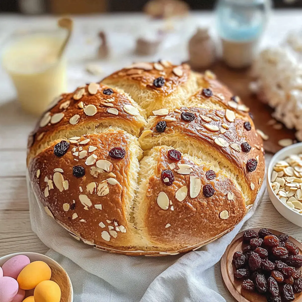 Dieses aromatische Osterbrot lädt dazu ein, mit einer Vielzahl von Beilagen ergänzt zu werden, die deine Mahlzeit perfektionieren.