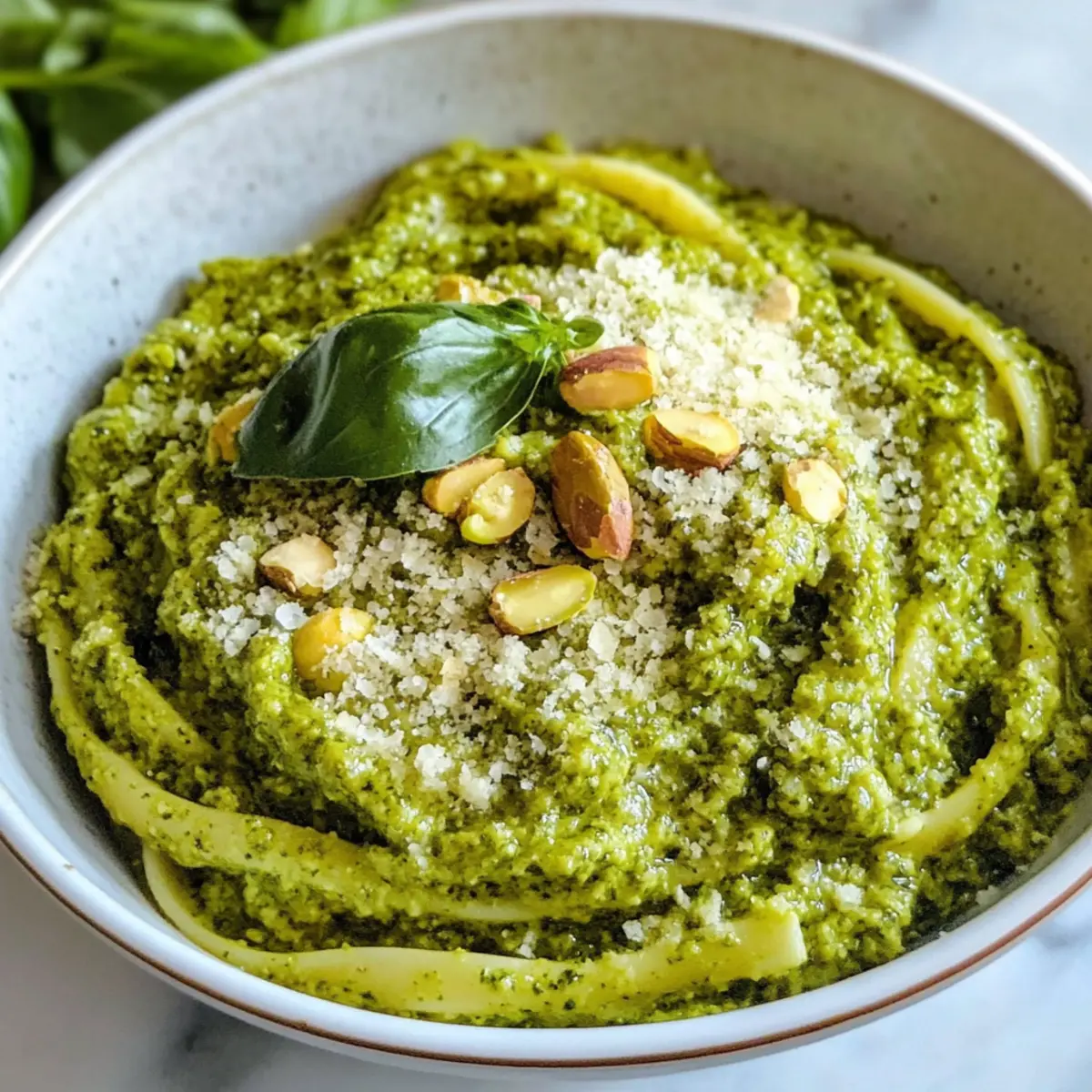 Sie können das Rezept anpassen, indem Sie die Pistazien durch andere Nüsse wie Walnüsse oder Mandeln ersetzen, wenn Sie einen anderen Geschmack möchten. Fügen Sie einen Hauch von Knoblauch für zusätzlichen Geschmack hinzu. Für eine vegane Version lässt sich der Pecorino durch Hefeflocken ersetzen, die einen käsigen Geschmack verleihen.
