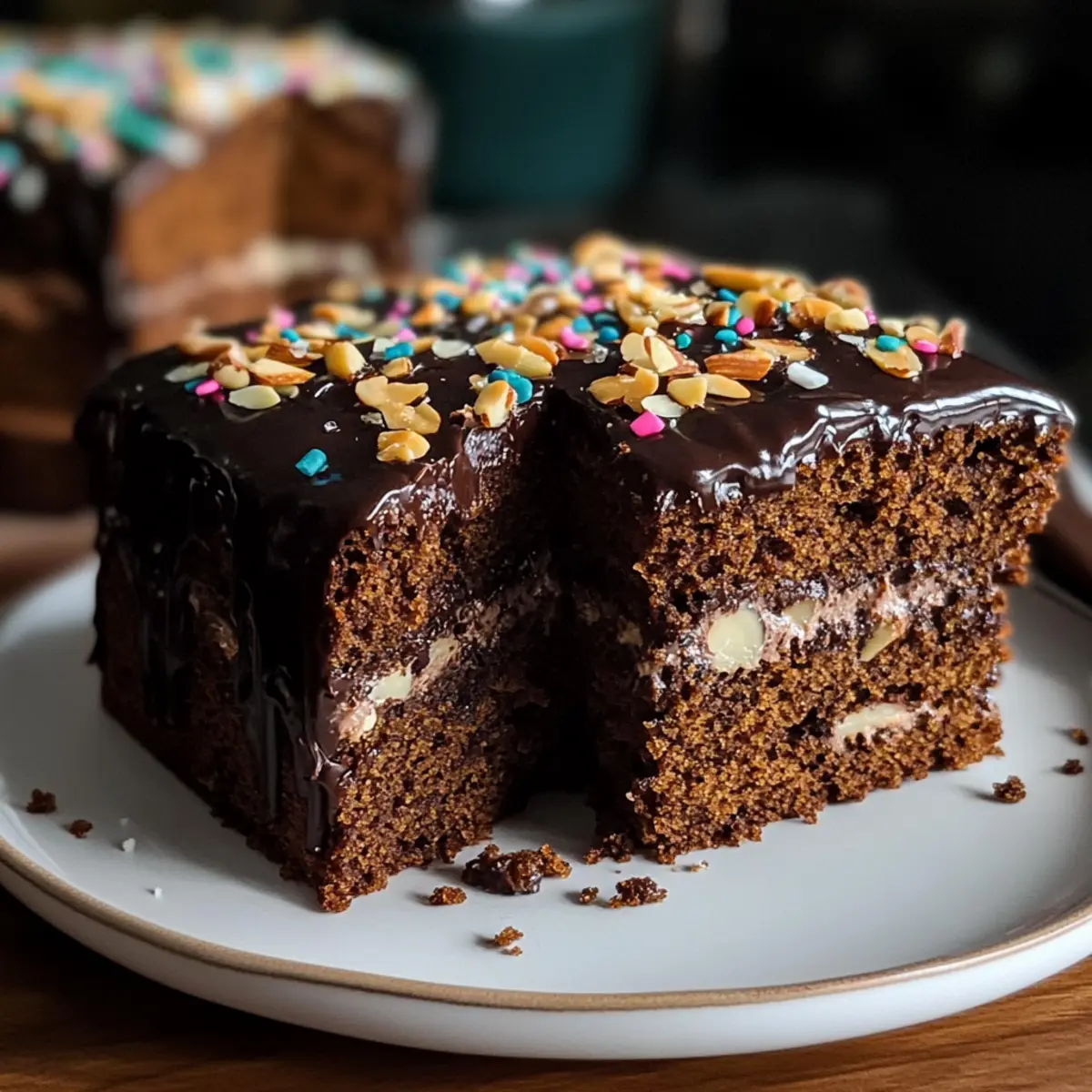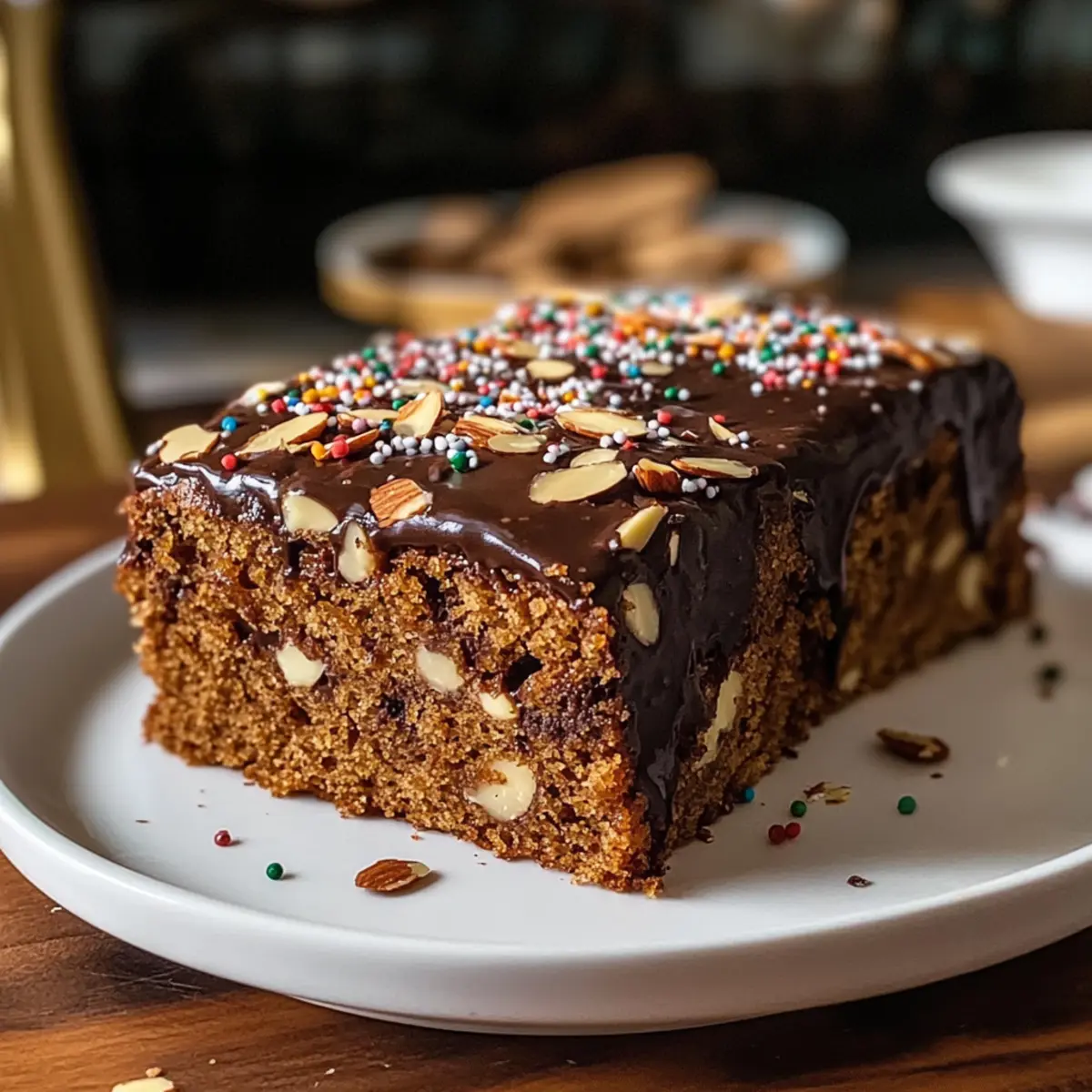 Für eine festliche Note können Sie den Kuchen mit geschmolzener Schokolade überziehen und mit Mandelblättchen sowie Zuckerstreuseln dekorieren. Eine weitere kreative Möglichkeit ist es, den Kuchen mit bunten Streuseln zu verzieren oder Karamellsoße darüber zu träufeln. So können Sie die Dekoration je nach Anlass gestalten!