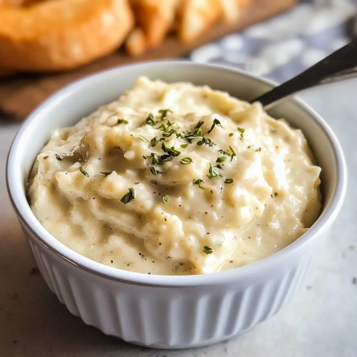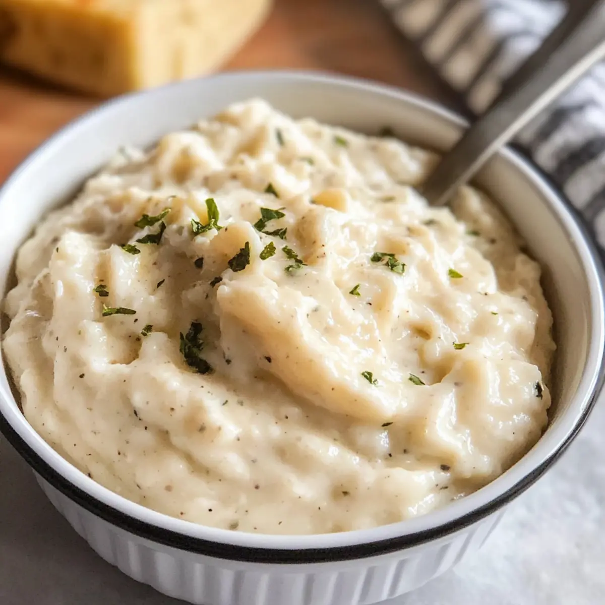 Frisches Brot: Knuspriges Baguette oder selbstgebackenes Sauerteigbrot sorgen für eine herrliche Textur und absorbieren den cremigen Dip optimal. Ein absoluter Genuss!