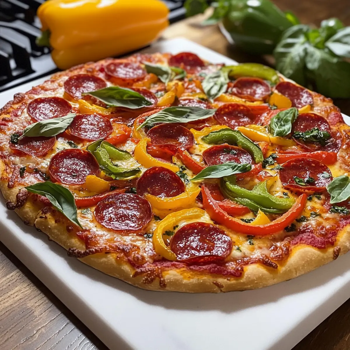 Erlebe die Freude am Kochen mit dieser köstlichen Salami-Pizza mit Paprika, die bei jedem Biss begeistert!