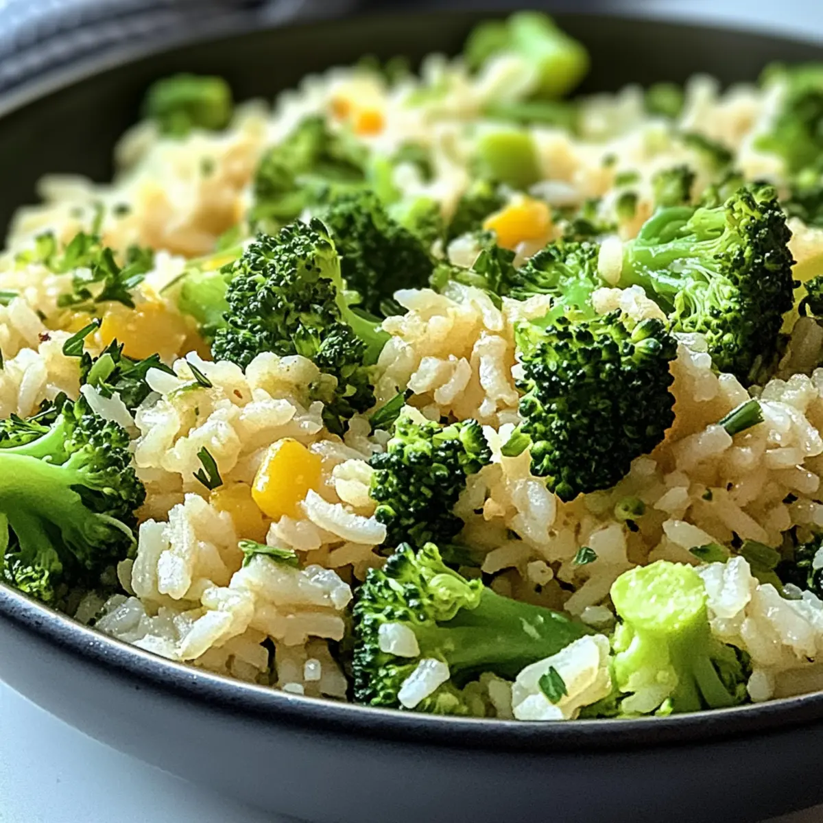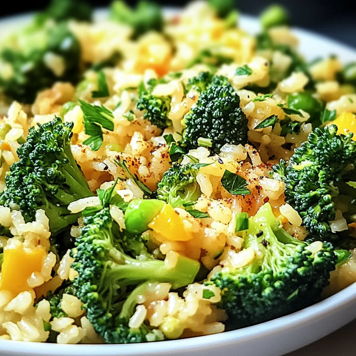 Richte den Schnellen Brokkoli-Reis heiß an und garniere ihn mit frisch gehackter Petersilie für einen farbenfrohen Akzent. Du kannst auch einen Spritzer frischen Zitronensaft hinzufügen, um den Aromen einen zusätzlichen Frischekick zu verleihen.