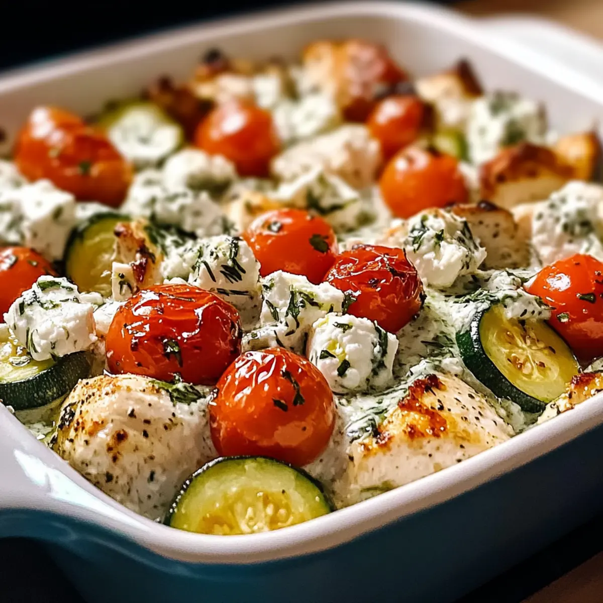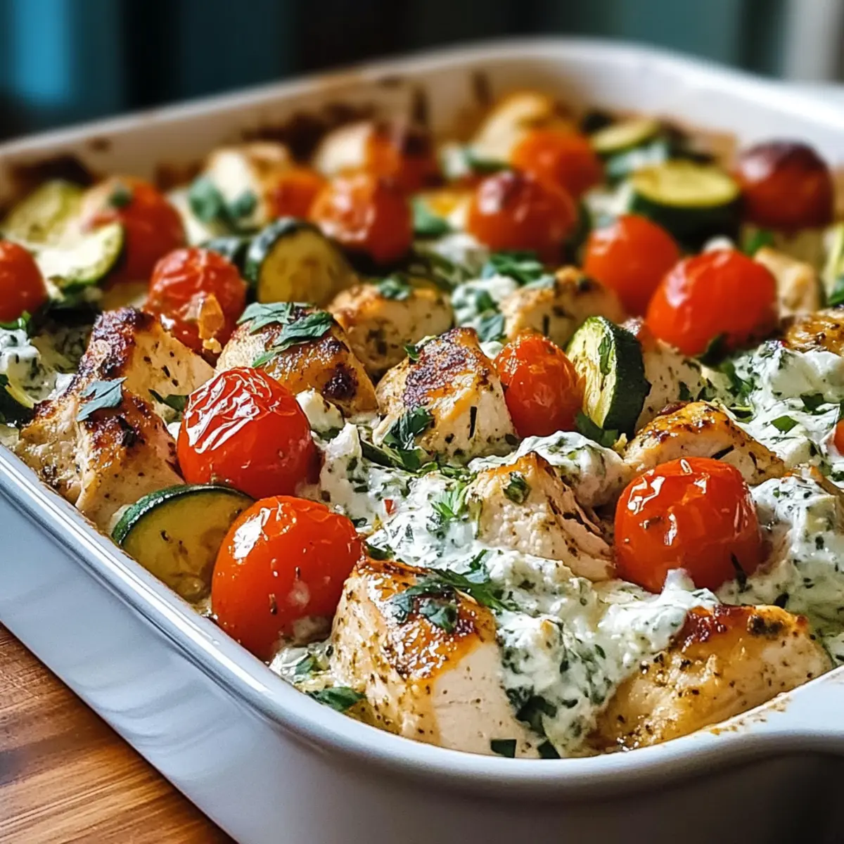 Schneller Dump-und-Bake-Hühnchen-Tzatziki-Auflauf