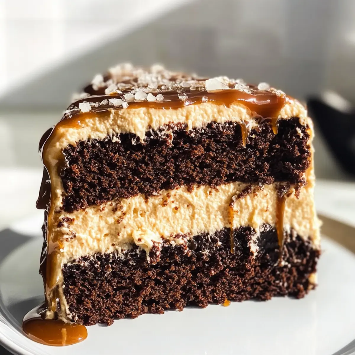 Der Schokoladen-Salziges Karamell Kuchen ist ein wahres Geschmackserlebnis, das sich mit köstlichen Beilagen wunderbar ergänzt.