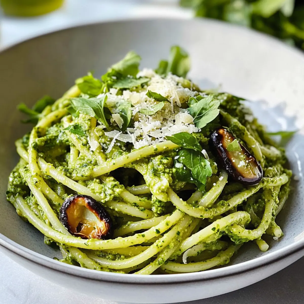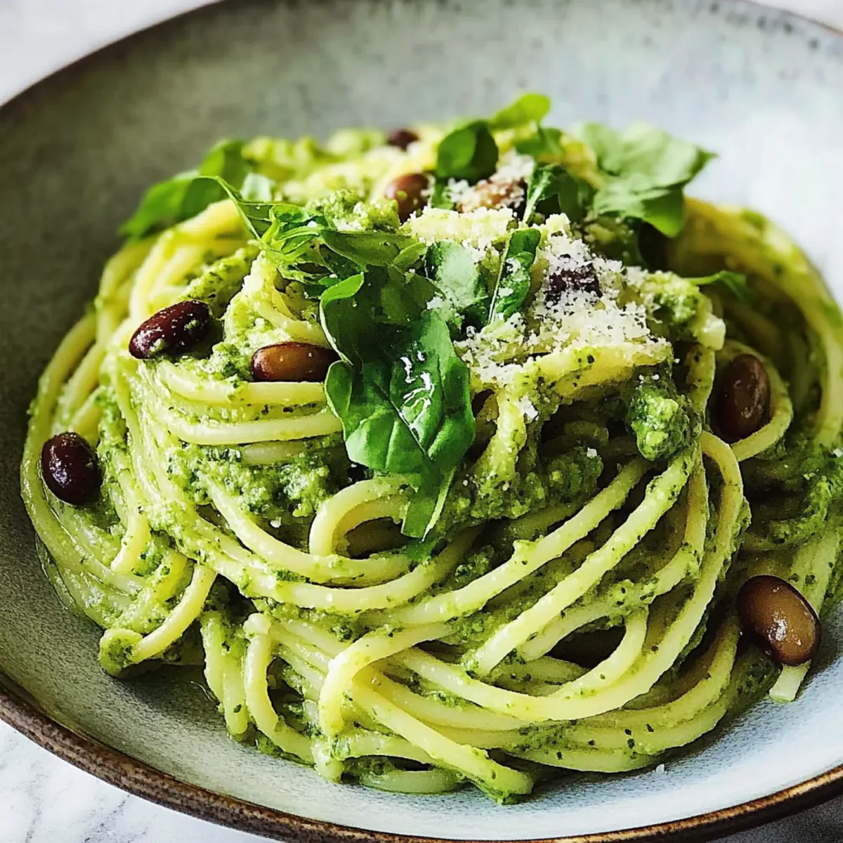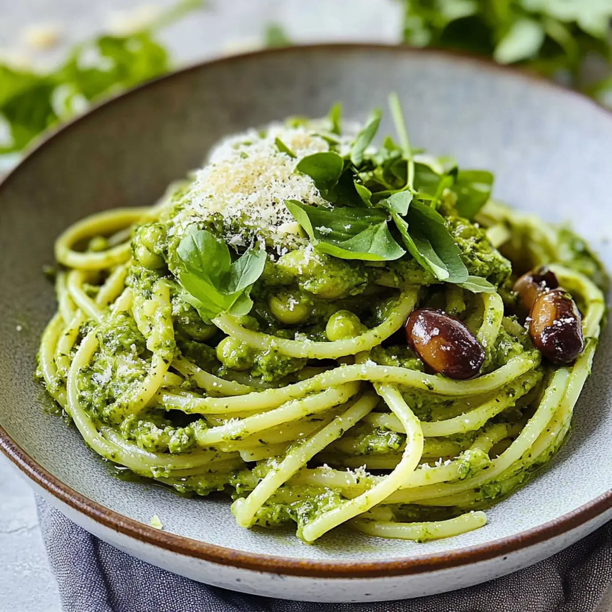 Spaghetti mit Edamame-Pesto für schnelles Kochen