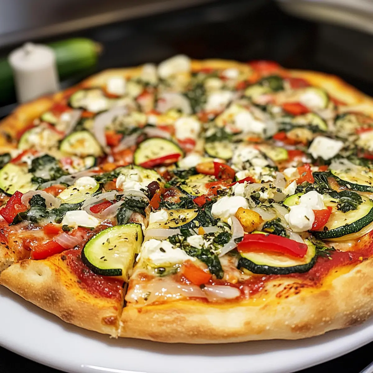 Aufwärmen: Um die Pizza wieder aufzuwärmen, backe sie bei 180°C für etwa 10-15 Minuten, bis sie durchwärmt ist. So bleibt die Spinat und Zucchini auf Pizza knusprig.