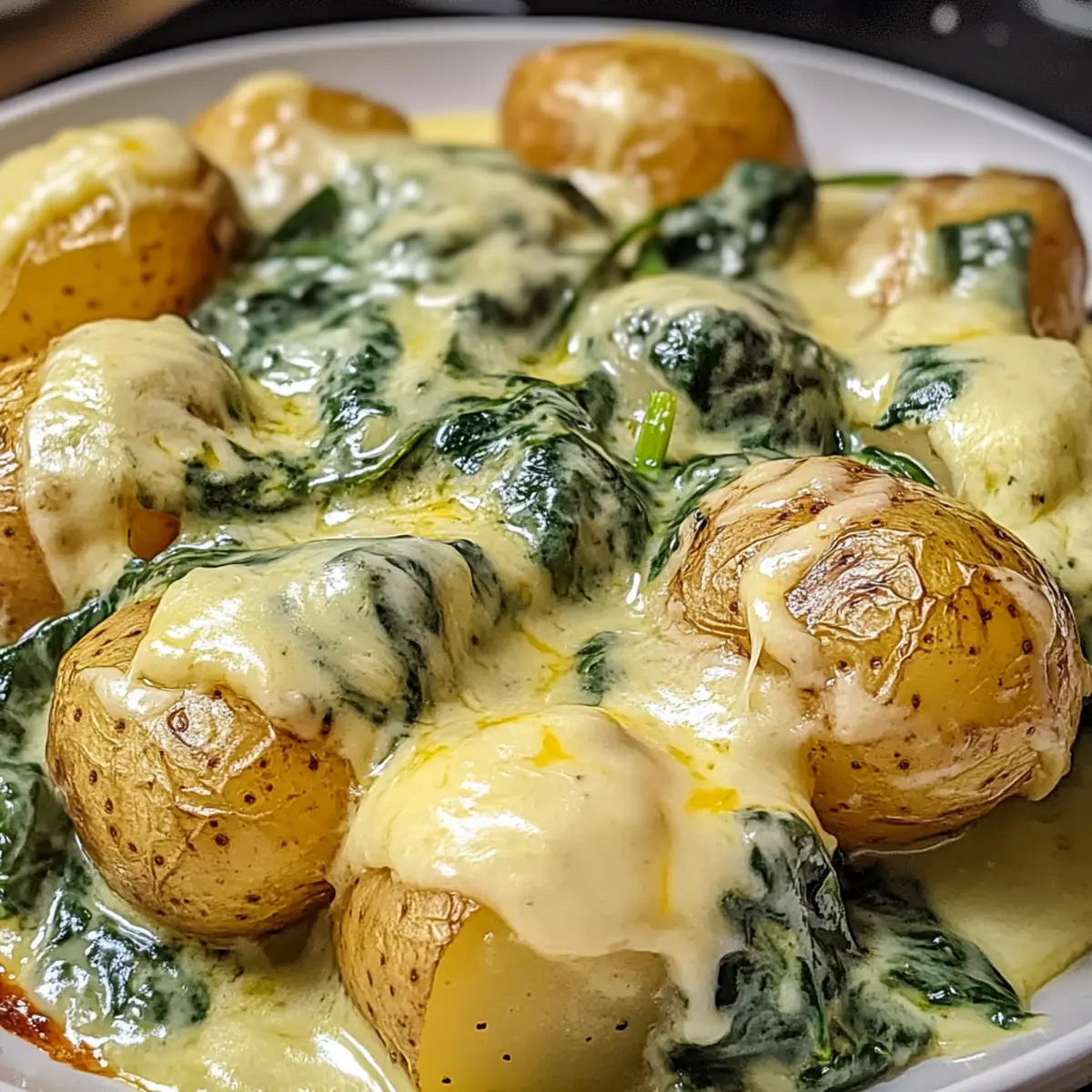 ** Geschmacksexplosion:** Die cremige Käse-Sahne-Soße und die zarten Kartoffeln harmonieren perfekt mit dem frischen Spinat und bieten ein unwiderstehliches Geschmackserlebnis.