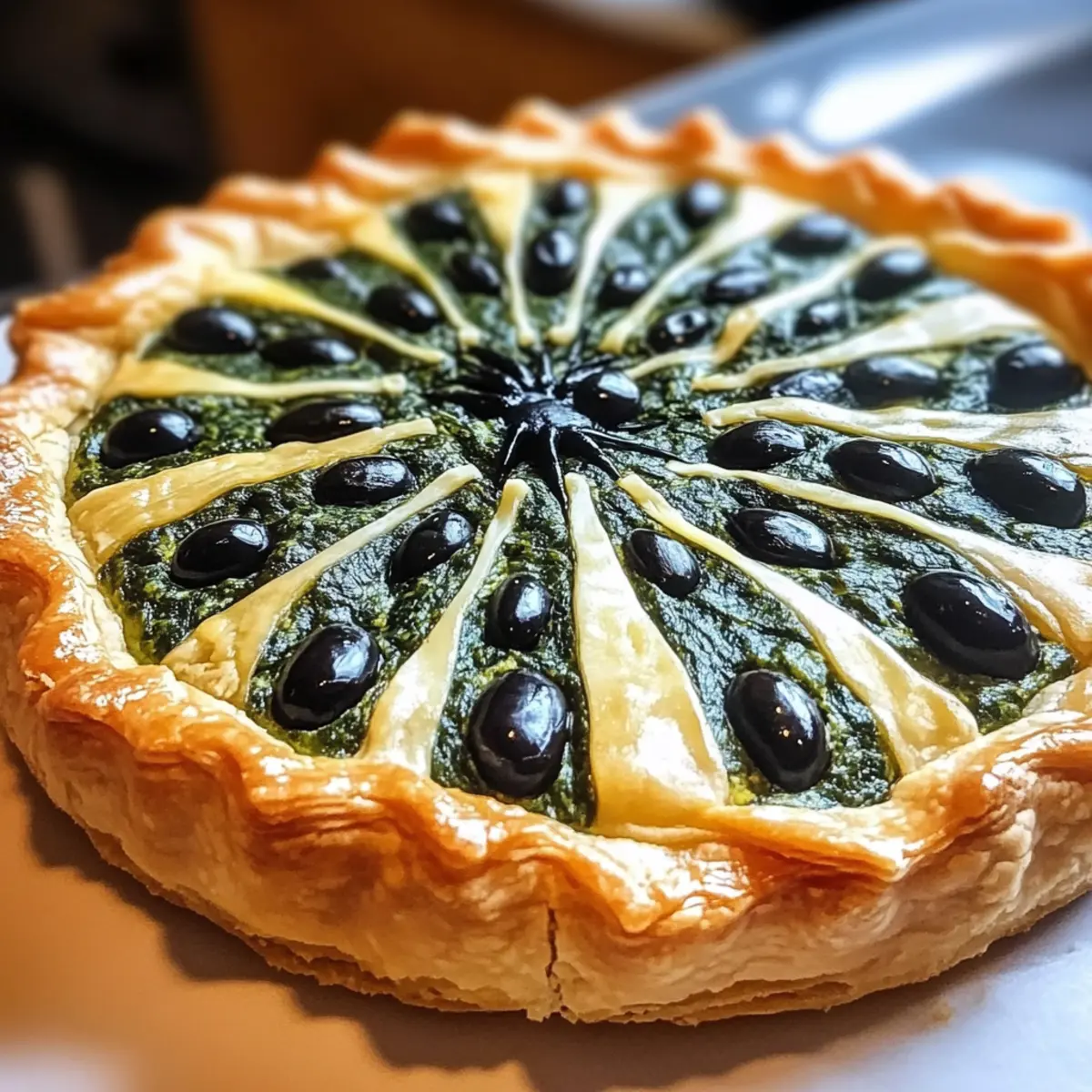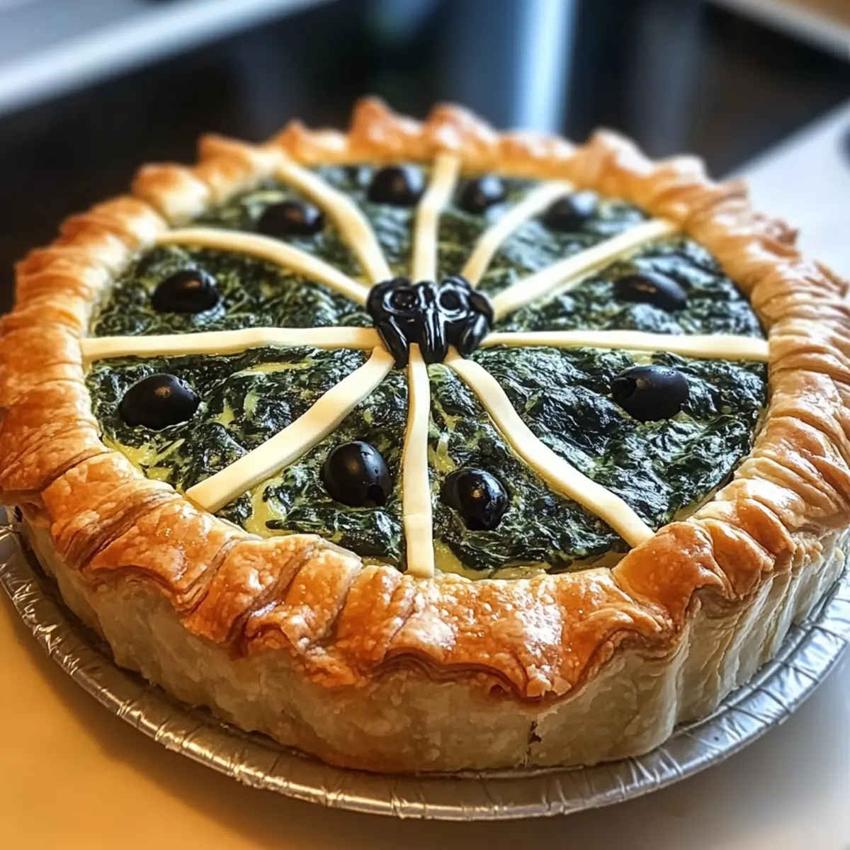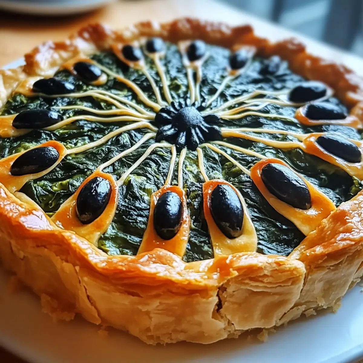 Diese gruselige Tarte aus Blätterteig und cremigem Spinat ist der perfekte Mittelpunkt für ein schauriges Halloween-Mahl!